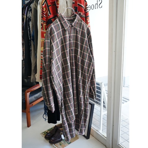 ユーロヴィンテージ グランパシャツ 小格子 プルオーバー 推定50〜60年代(実寸L相当)|NA632