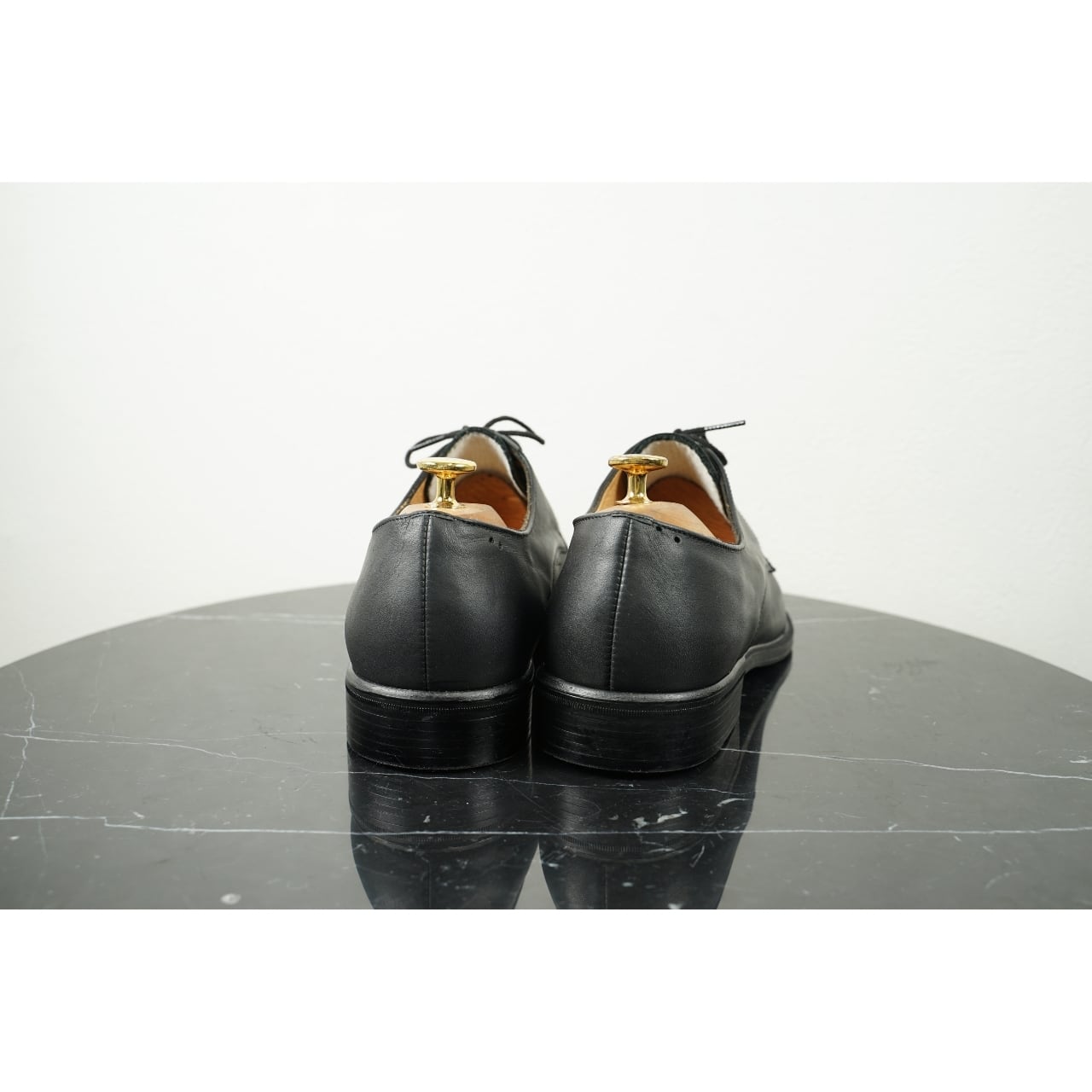 スムースレザーに、ややスクエア気味のトゥ。3ホールの外羽根など、武骨さと端正さをあわせ持つバランスのよいデザインが魅力です。