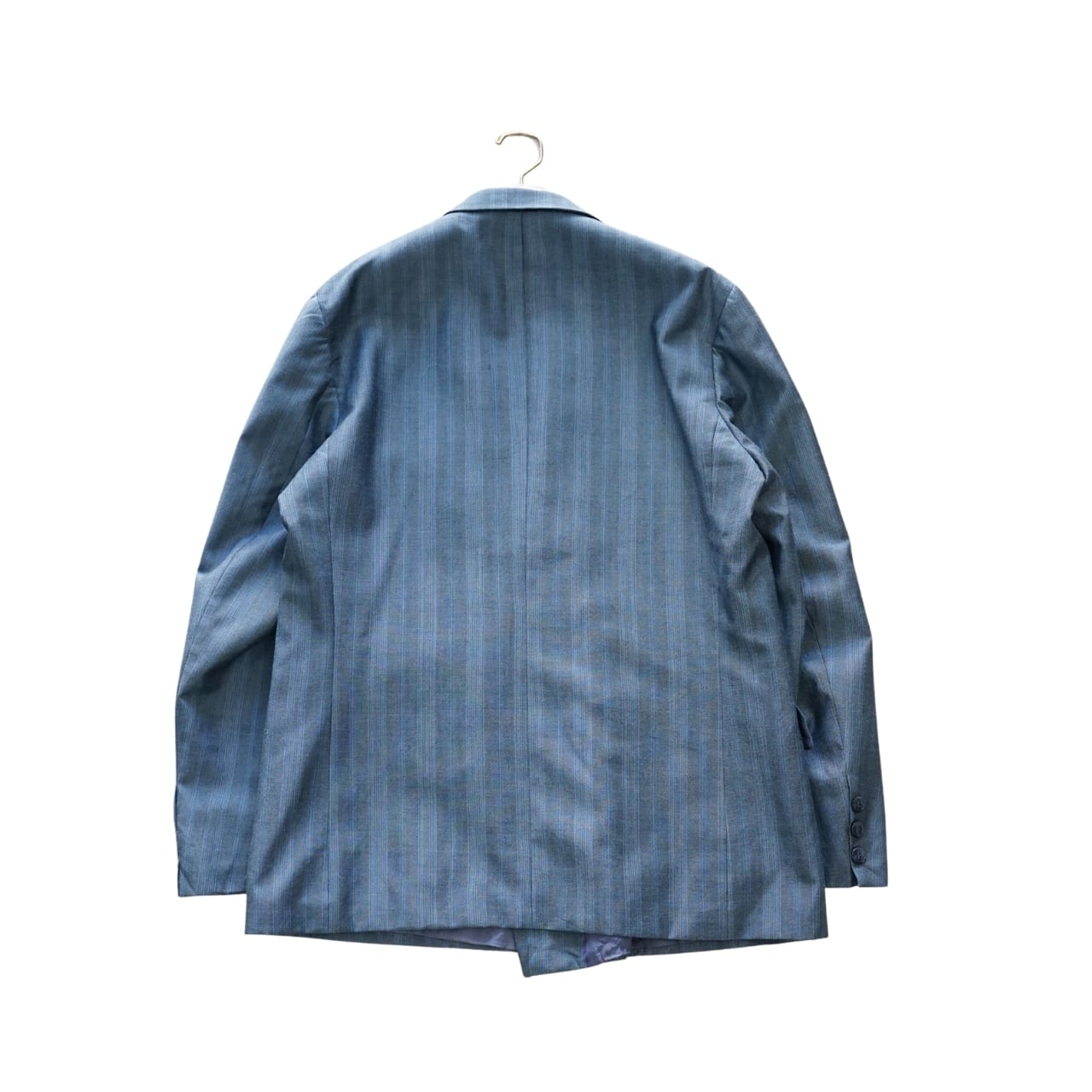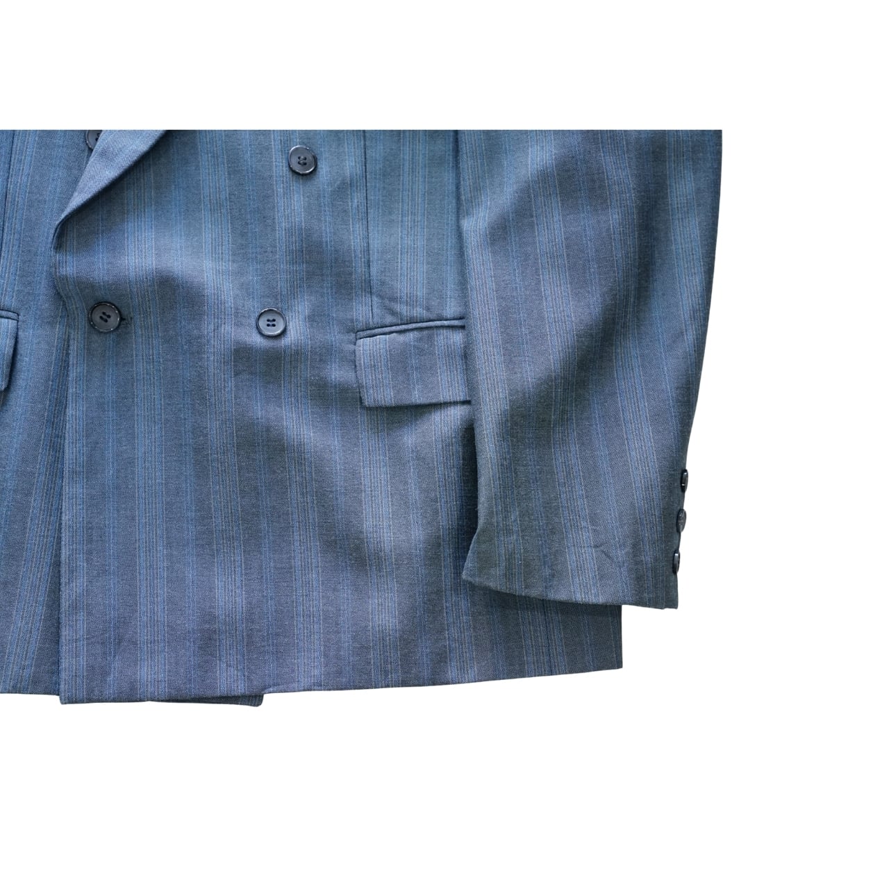KRUUNU ダブルジャケット ブルー系 ストライプ柄 L程度|NA359