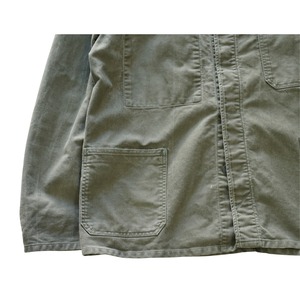 3ポケット仕様のシンプルなカバーオールタイプで、コットン生地特有のアタリやスレが雰囲気よく表れています。