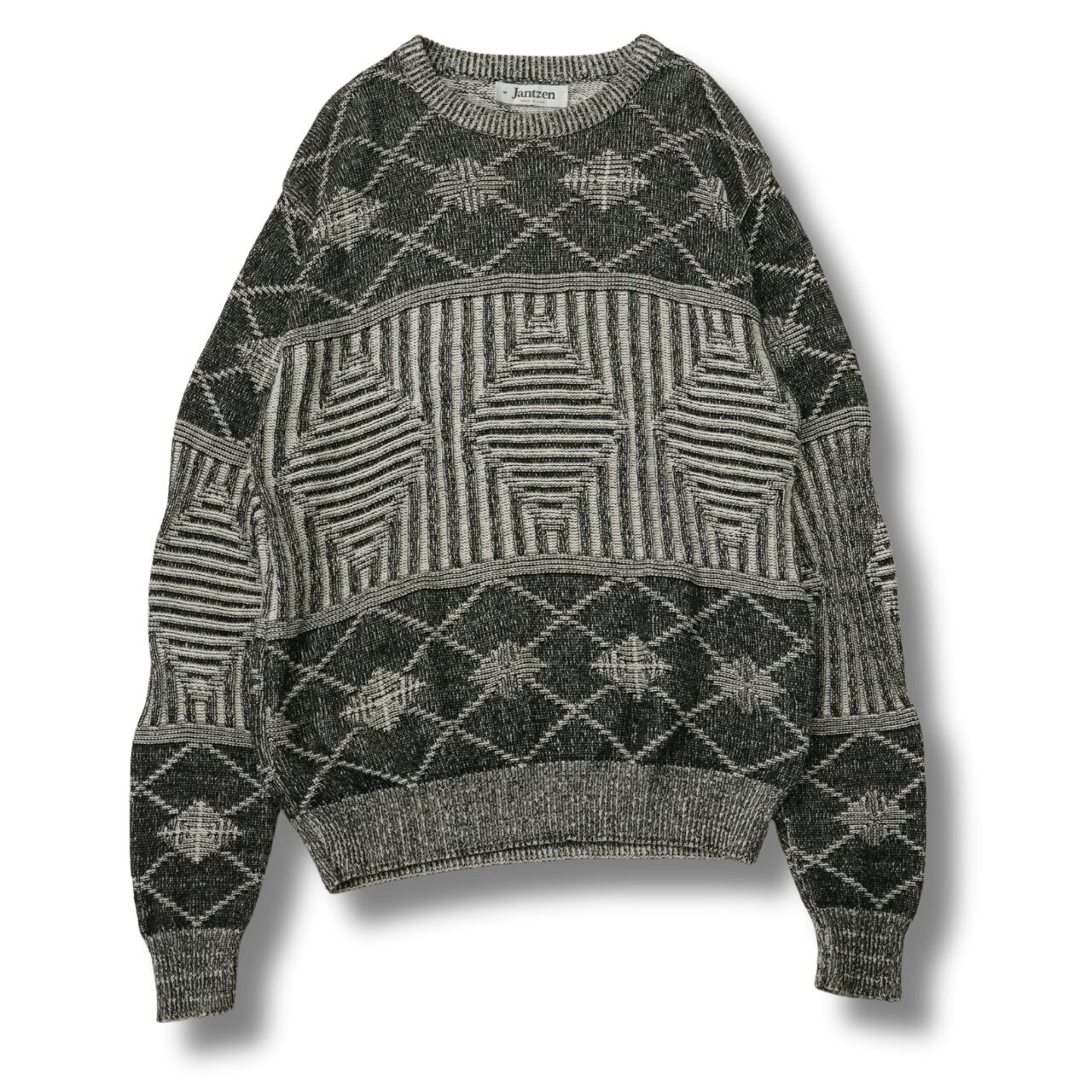 Jantzen USA製 ジオメトリックパターン コットンニット セーター(表記M・実寸L相当)|NA416