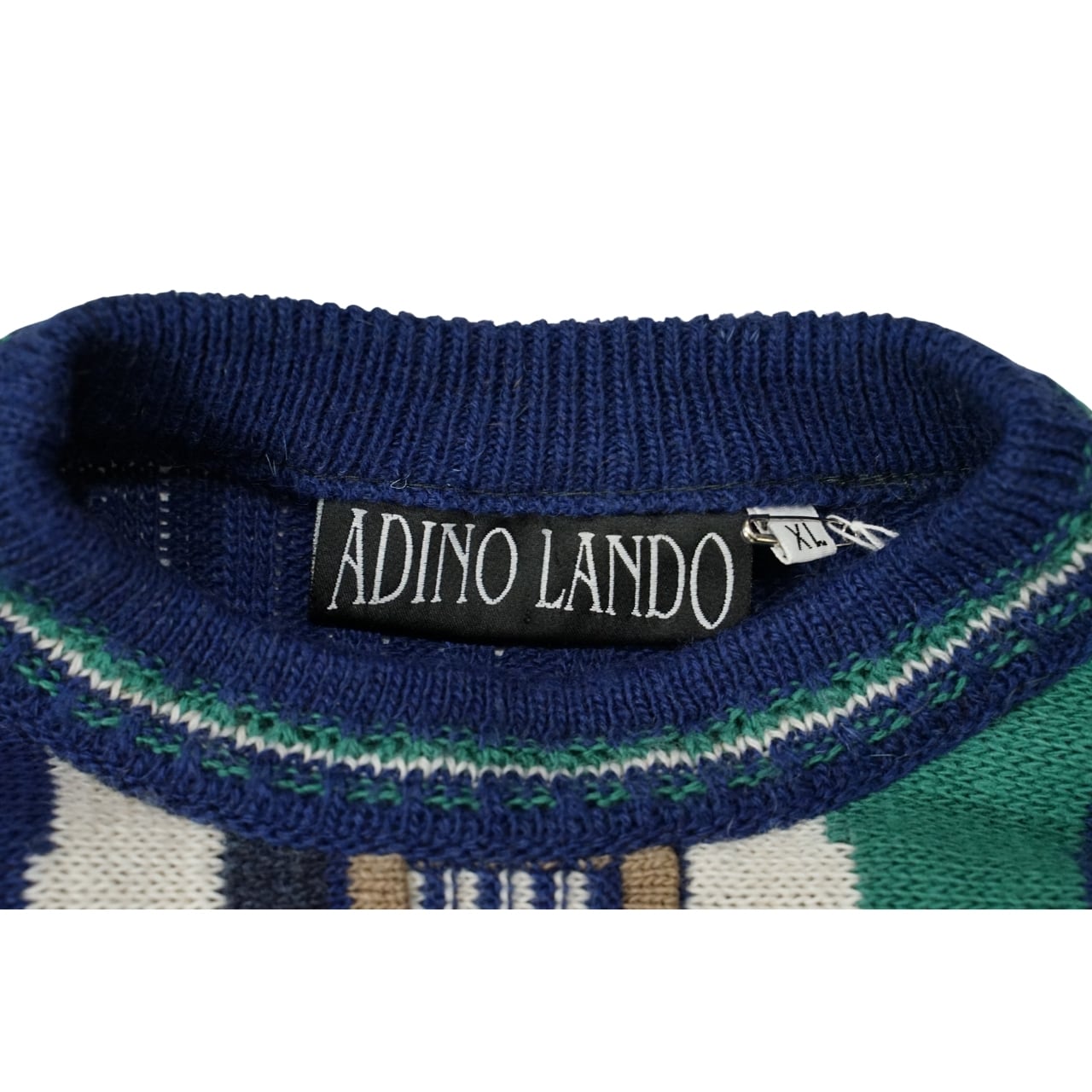 ADINO LANDO ブルー×グリーン 立体編み セーター(表記XL・実寸XL相当)|NA418