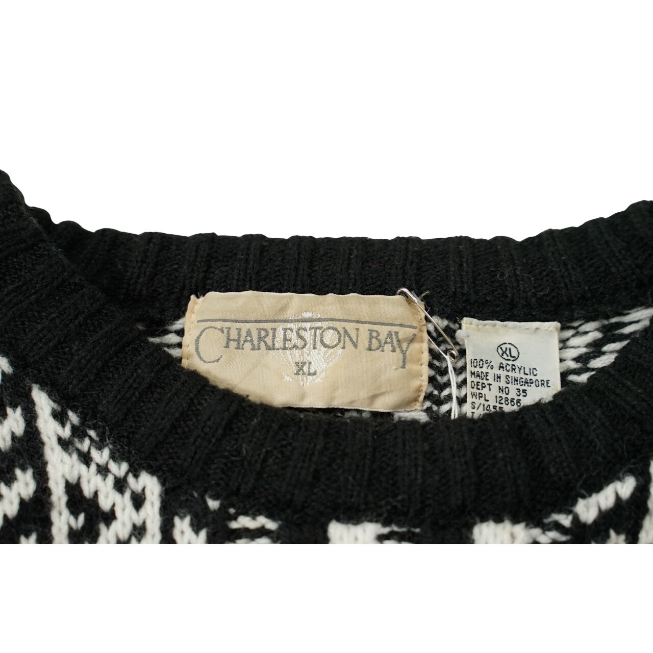 CHARLESTON BAY ブラック×ホワイト 立体編み セーター(表記XL・実寸XL相当)|NA419