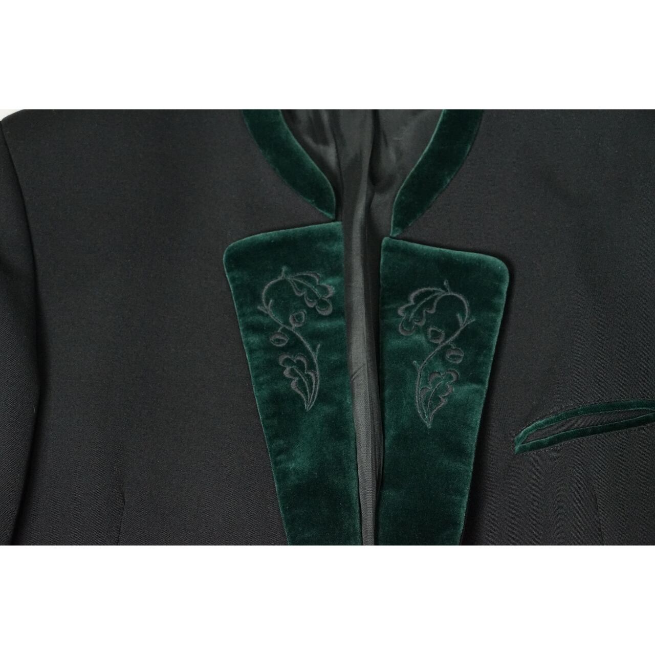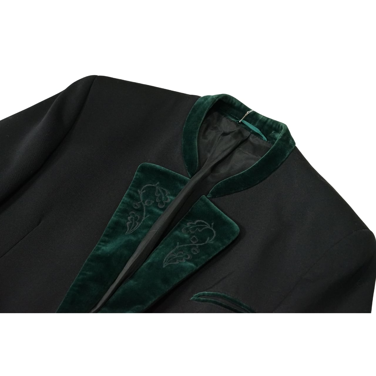 Eduard Rettinger ブラック×グリーン ベルベット切り替え チロルジャケット コインボタン(表記26・実寸XL相当)|NA440