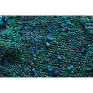 グリーンをベースに、ブルー・パープル・ホワイトなどのネップが織り込まれた奥行きのある表情が魅力の一着。