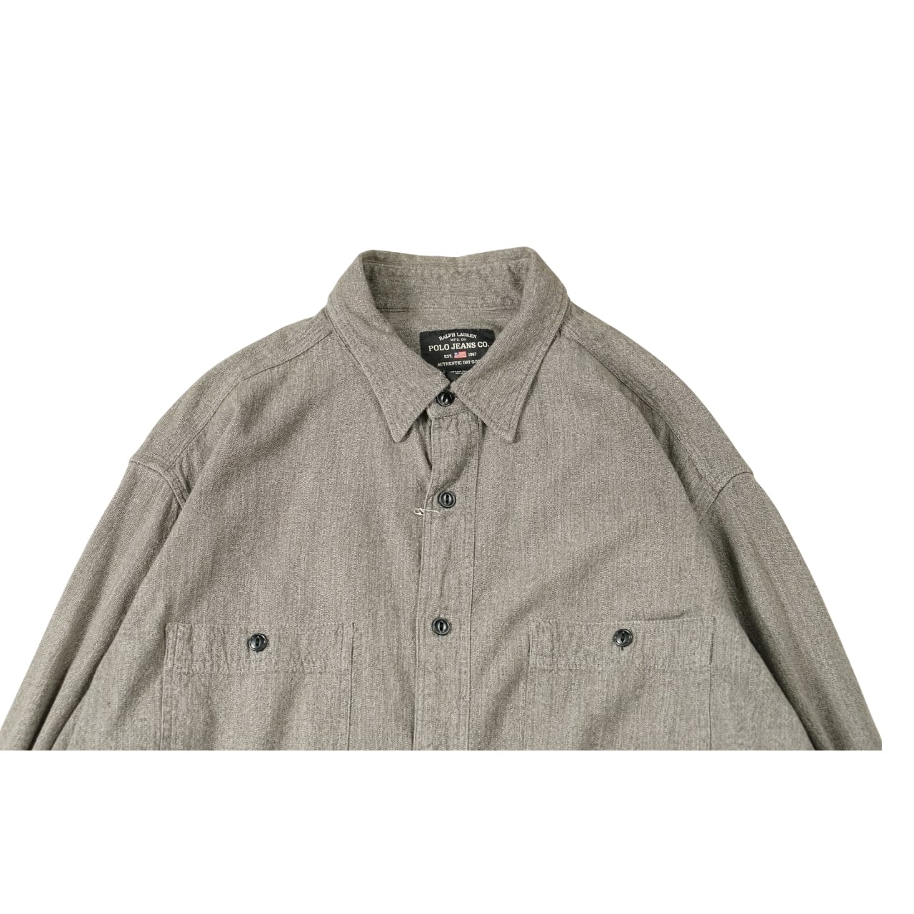Polo Jeans Co. ポロジーンズ コットン ワークシャツ グレーシャンブレー(表記M・実寸M相当)|NA464