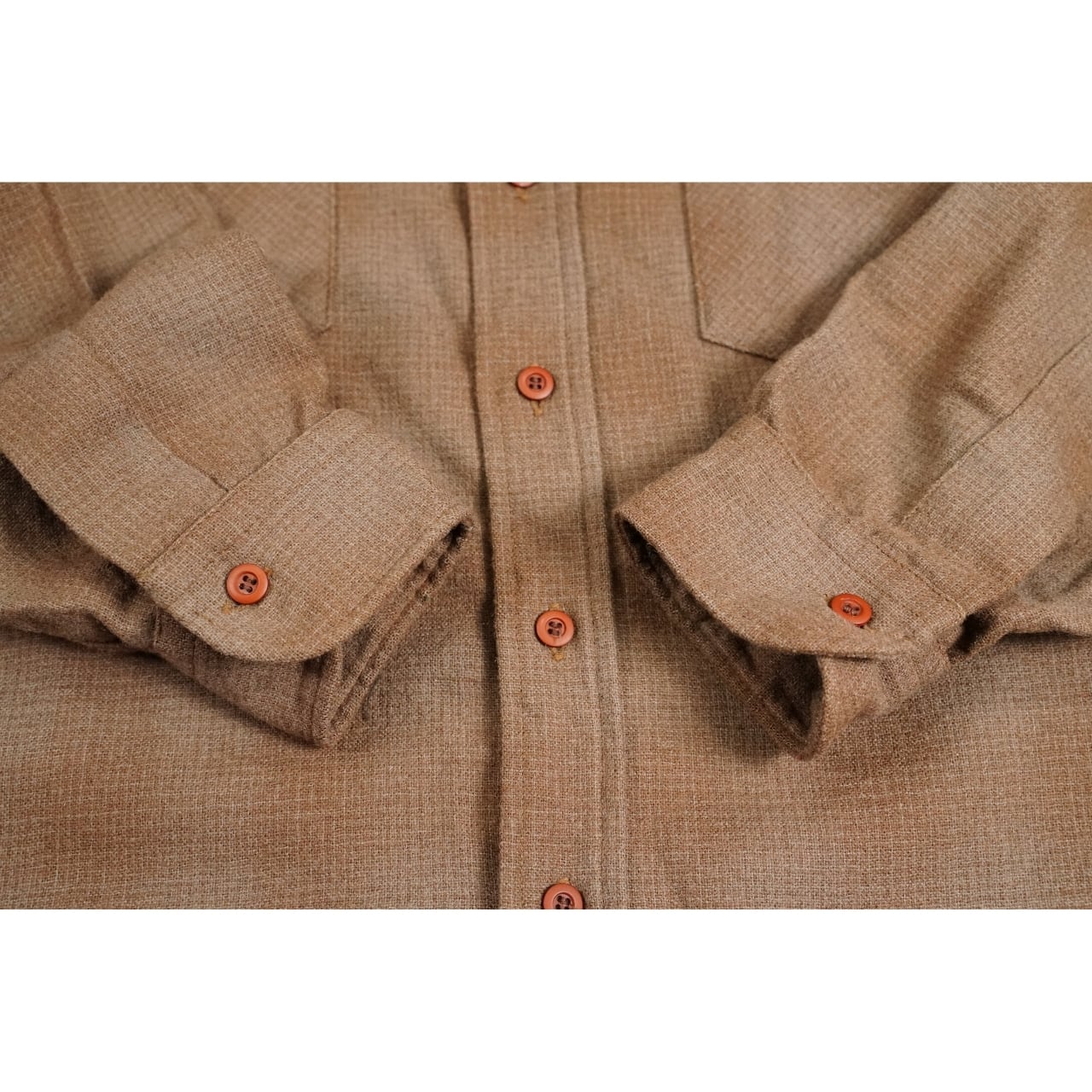 70年代頃の Outdoorsman ラインらしい、しっかりとしたウール素材と落ち着いたブラウン系の色味が特徴の一着です。