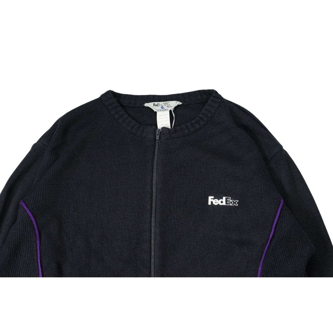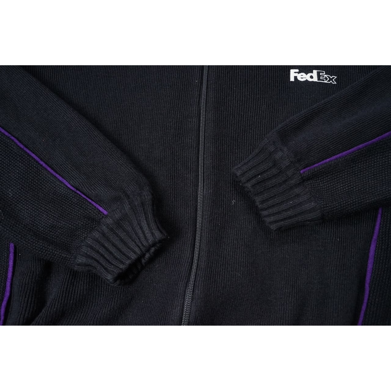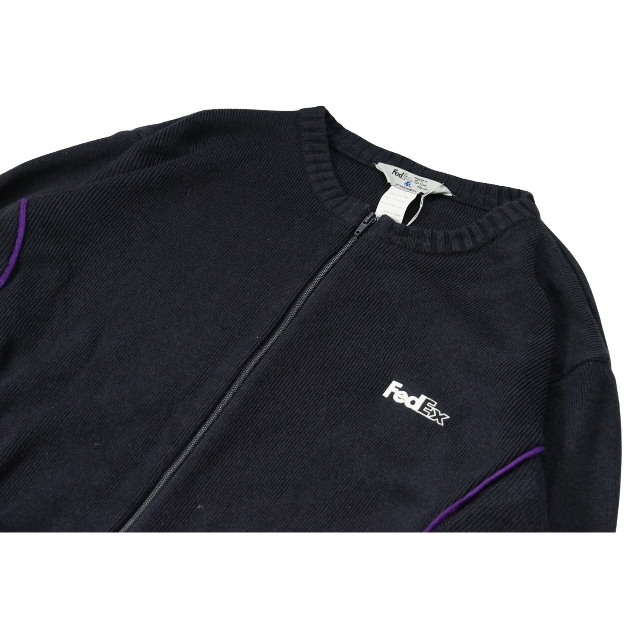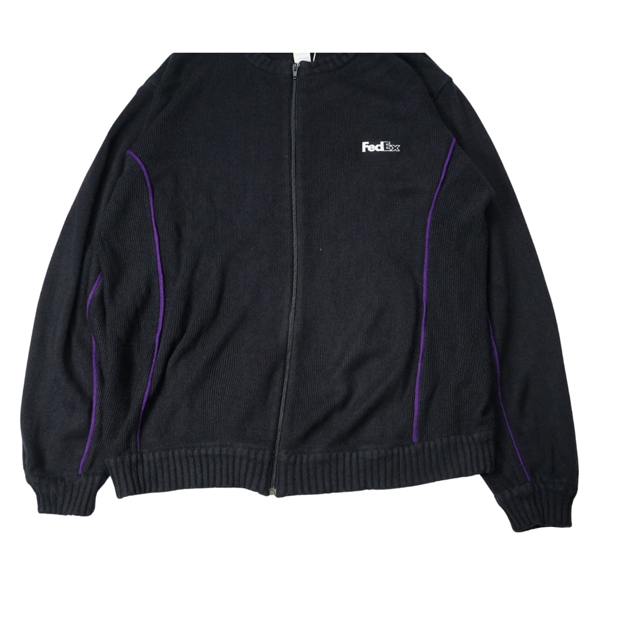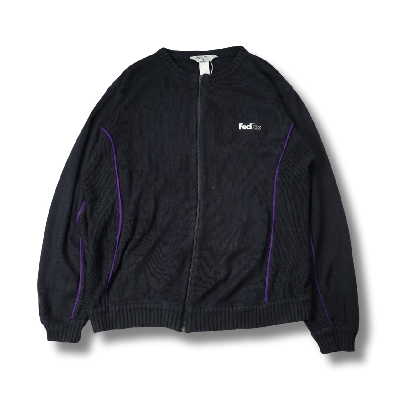 FedEx フェデックス ロゴ刺繍 ジップアップニット(表記XXL・実寸XXL相当)|NA539