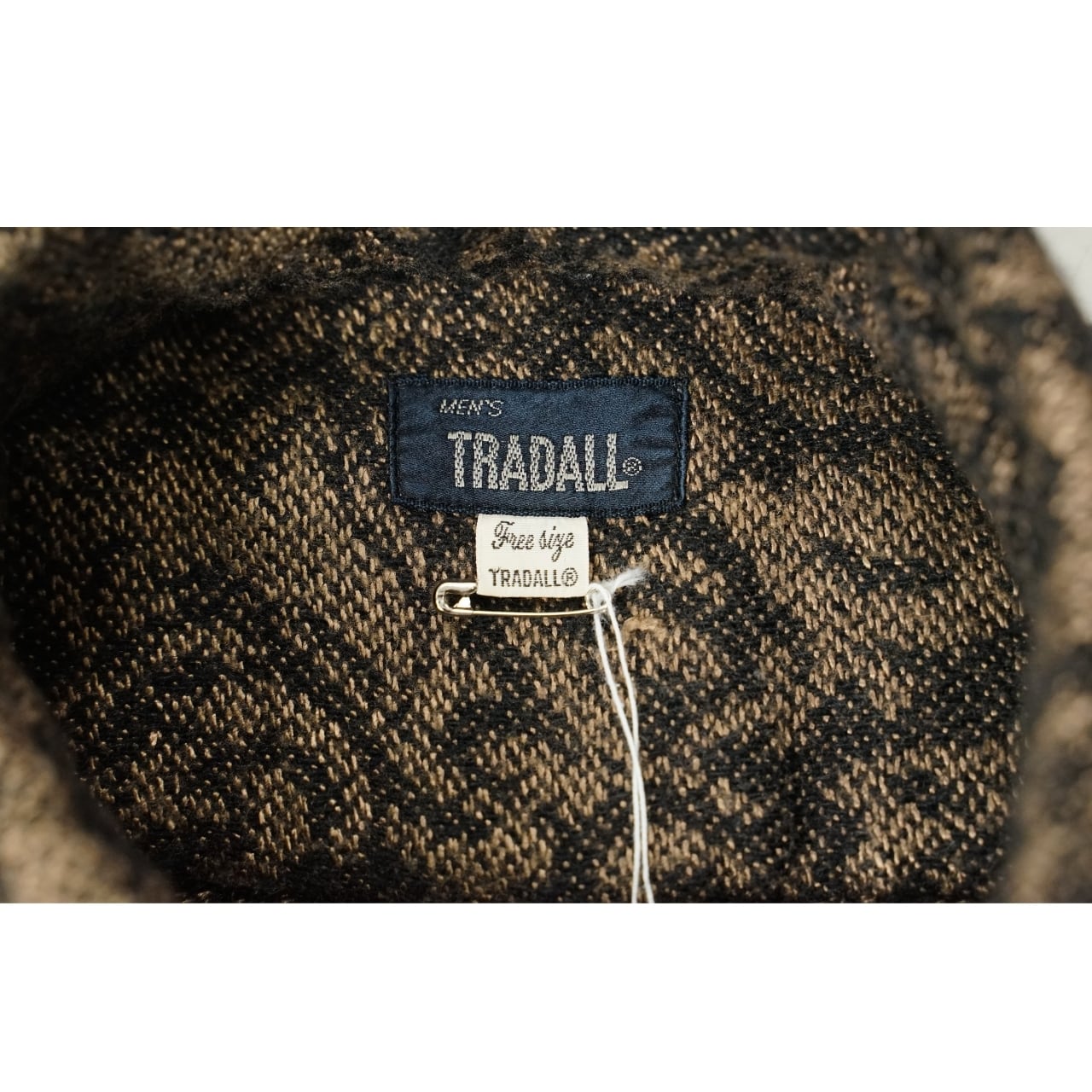 落ち着いた配色と総柄デザインが印象的な、TRADALLのウールシャツです。