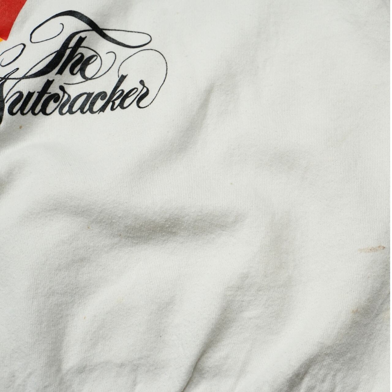 バレエ作品らしいユーモアと温かみのあるグラフィックが特徴で、ヴィンテージスウェットならではの雰囲気を楽しめる一枚。