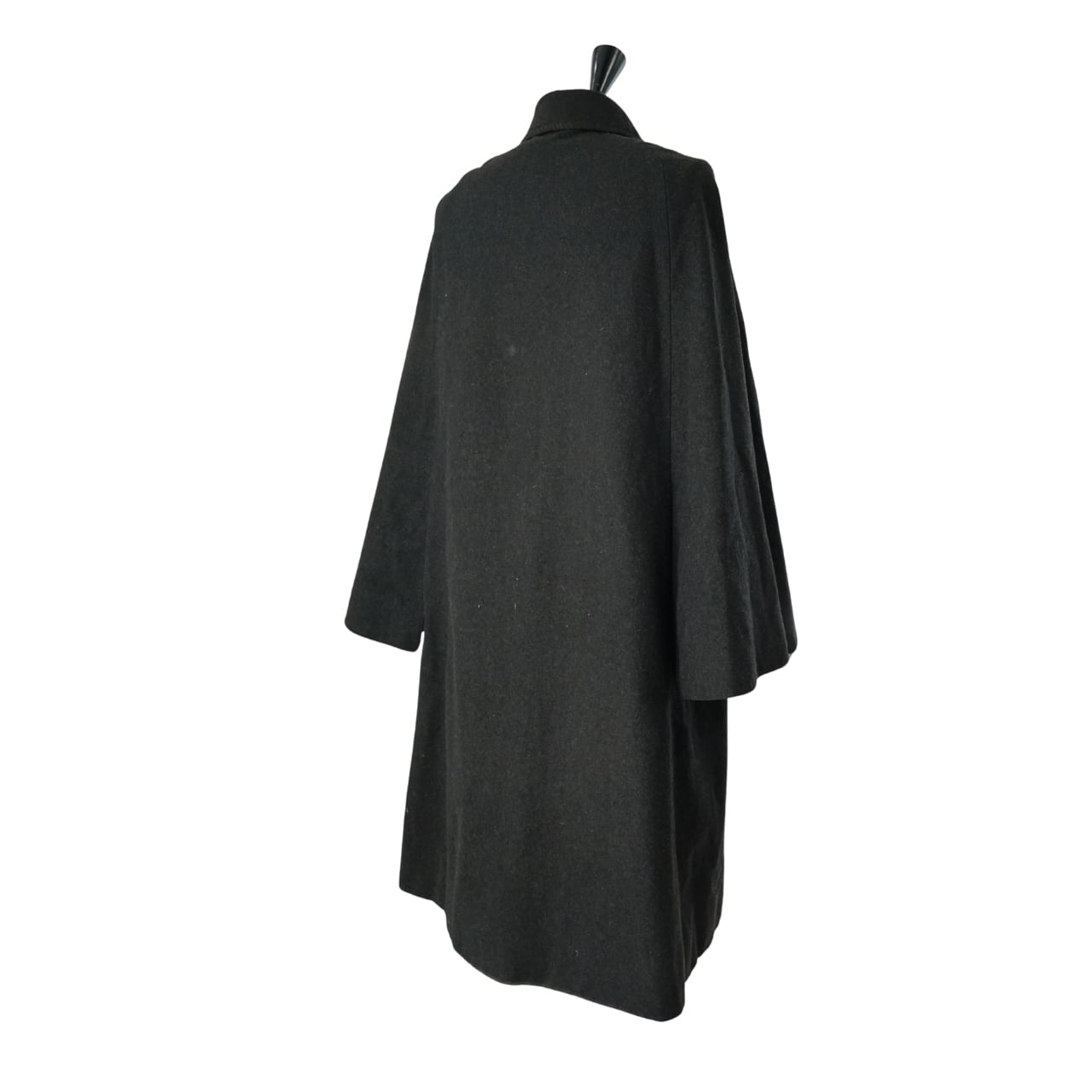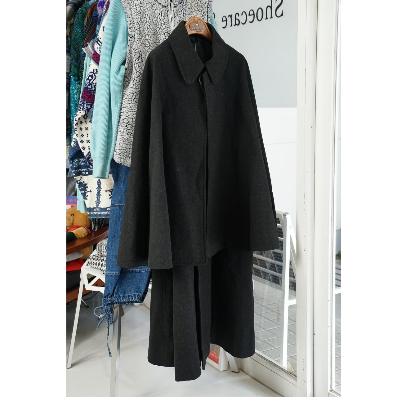 フロントはボタン留め仕様で、首元から肩にかけてゆったりと包み込むようなシルエット。