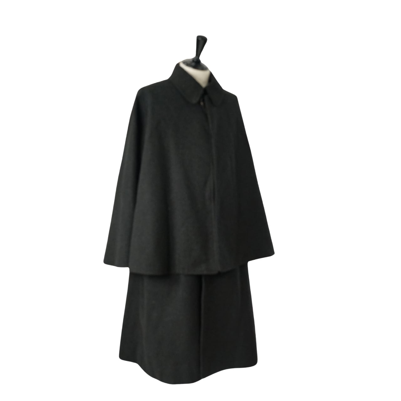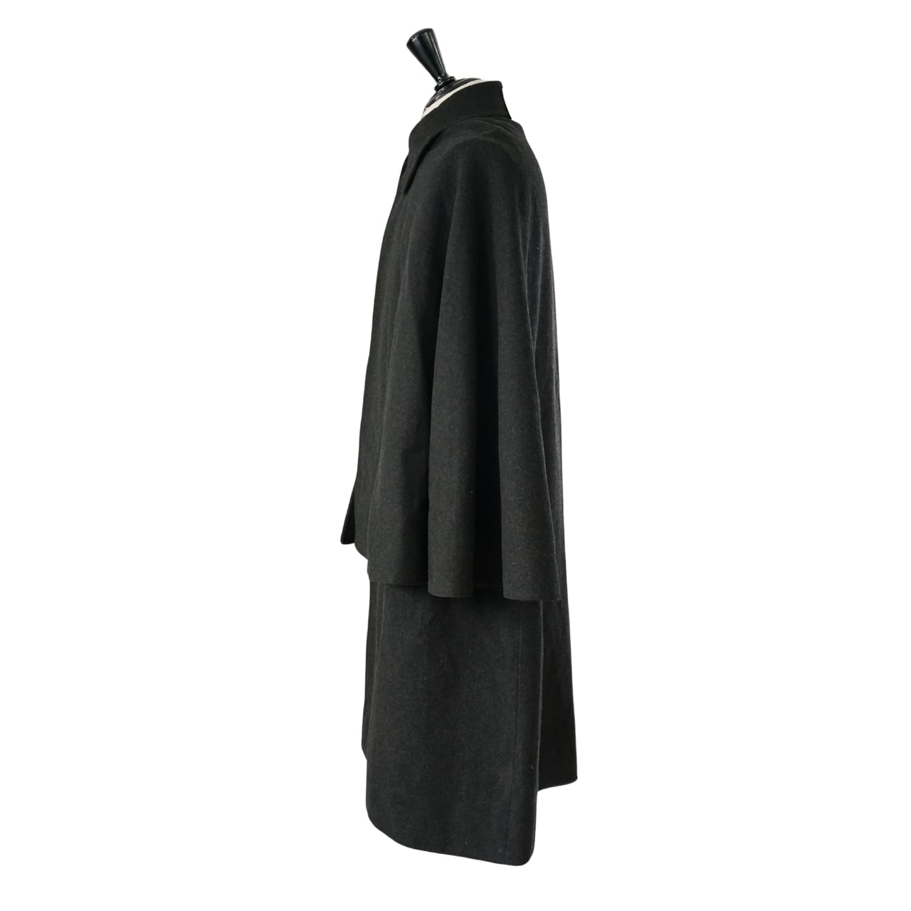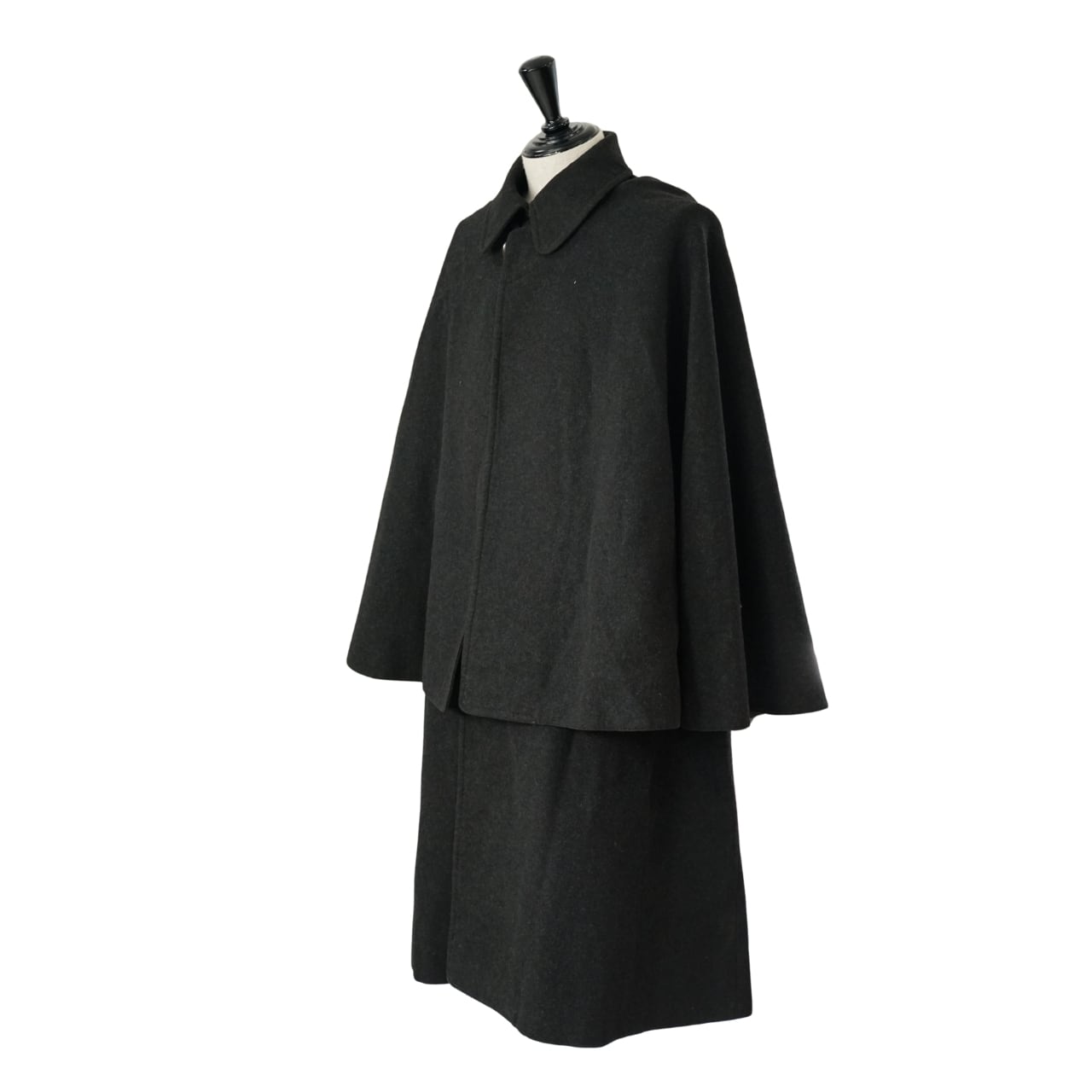 ケープ状のレイヤードデザインが特徴で、動きに合わせて自然なドレープが生まれる、雰囲気のある一着。
