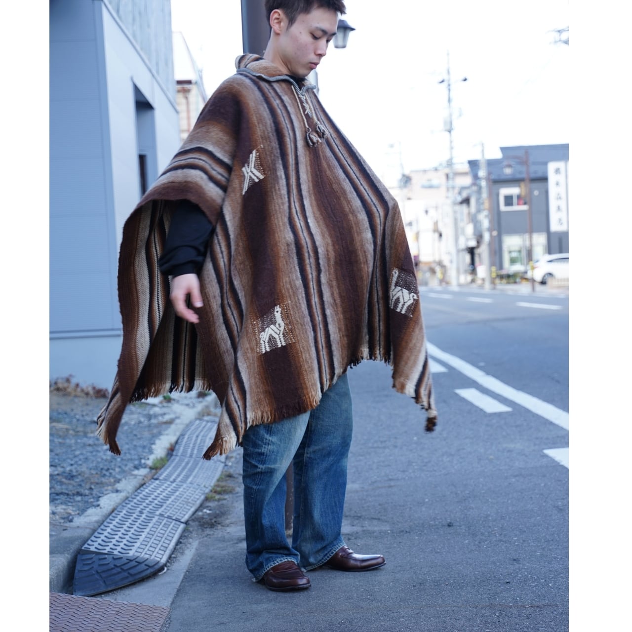 温かみのある表情が魅力の、ヴィンテージアルパカポンチョです。