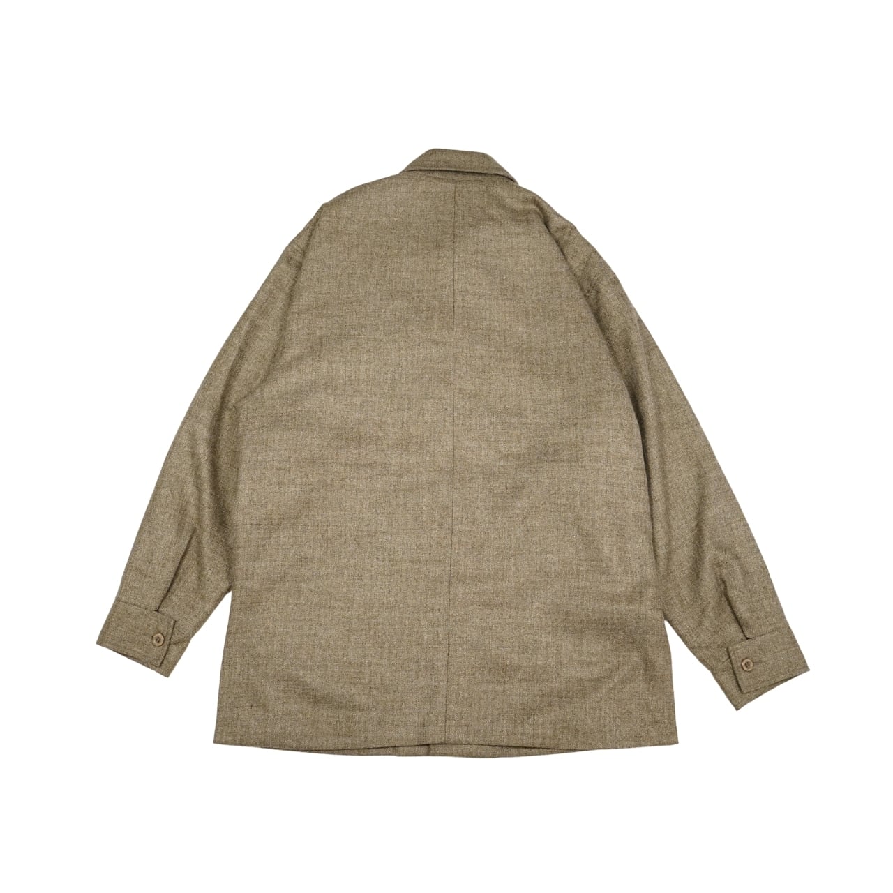 シャツ感覚で羽織れる軽めの生地感ながら、フロントのフラップポケットややや長めの着丈など、ジャケットライクなディテールも備えています。