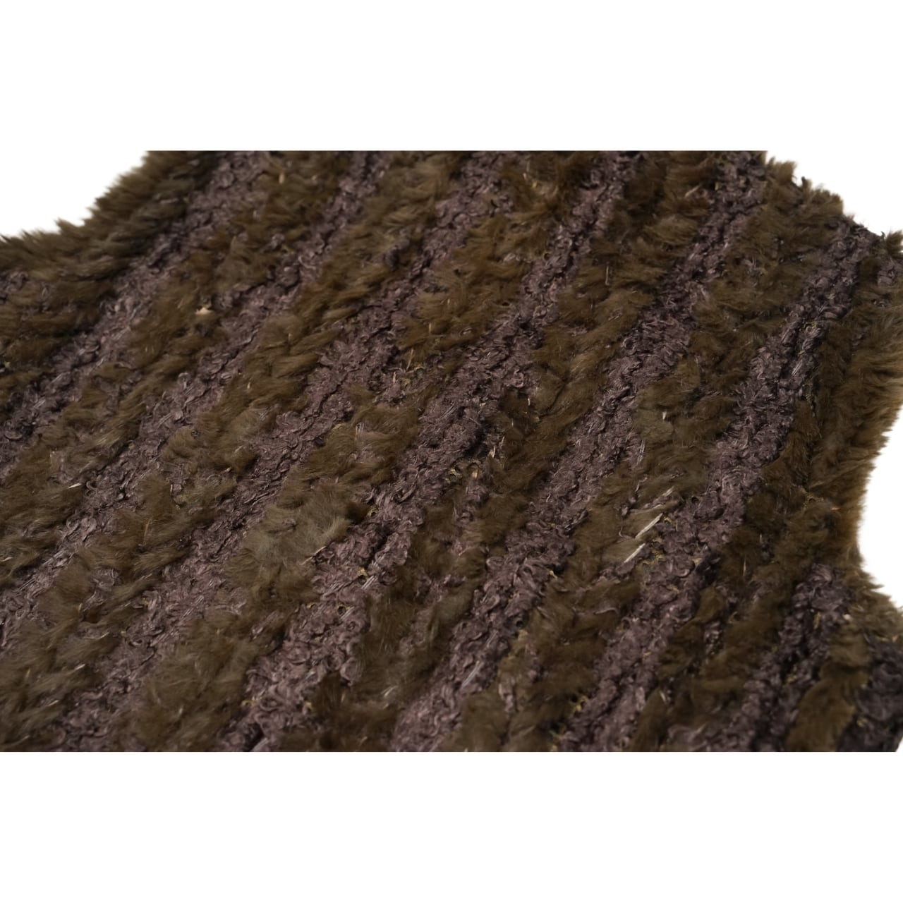 表面はブラウン系のラビットファーをストライプ調に切り替えたデザインで、毛並みの表情に奥行きがあり、上品さと存在感を兼ね備えた一着。