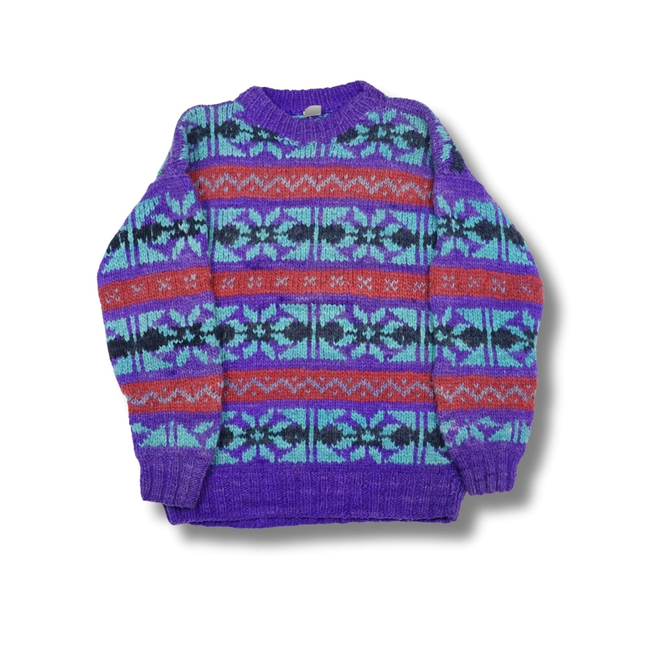 EL INCA エルインカ 総柄エクアドルニット(サイズ表記なし・実寸L相当)|NA615