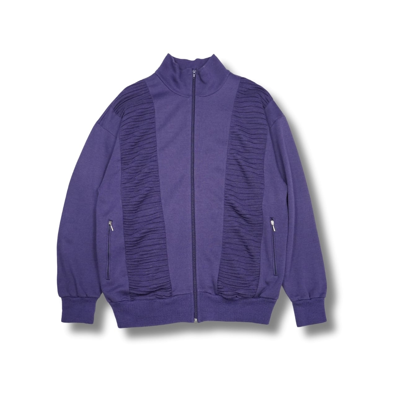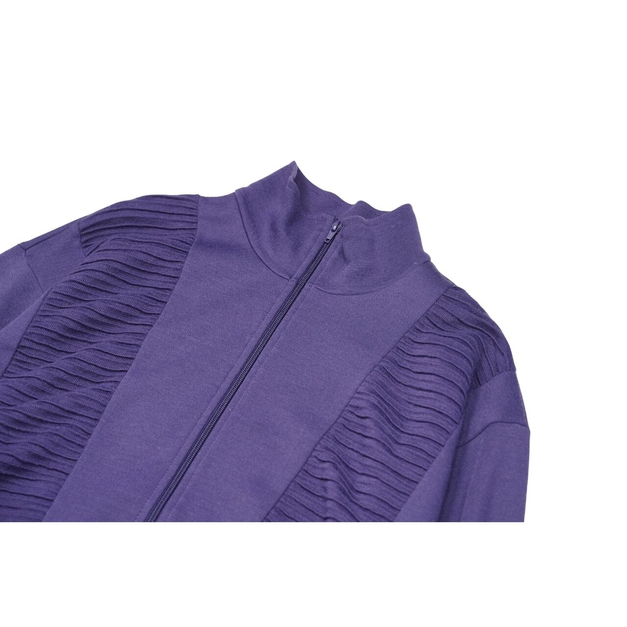 落ち着いたパープルカラーに、スタンドカラー仕様。
