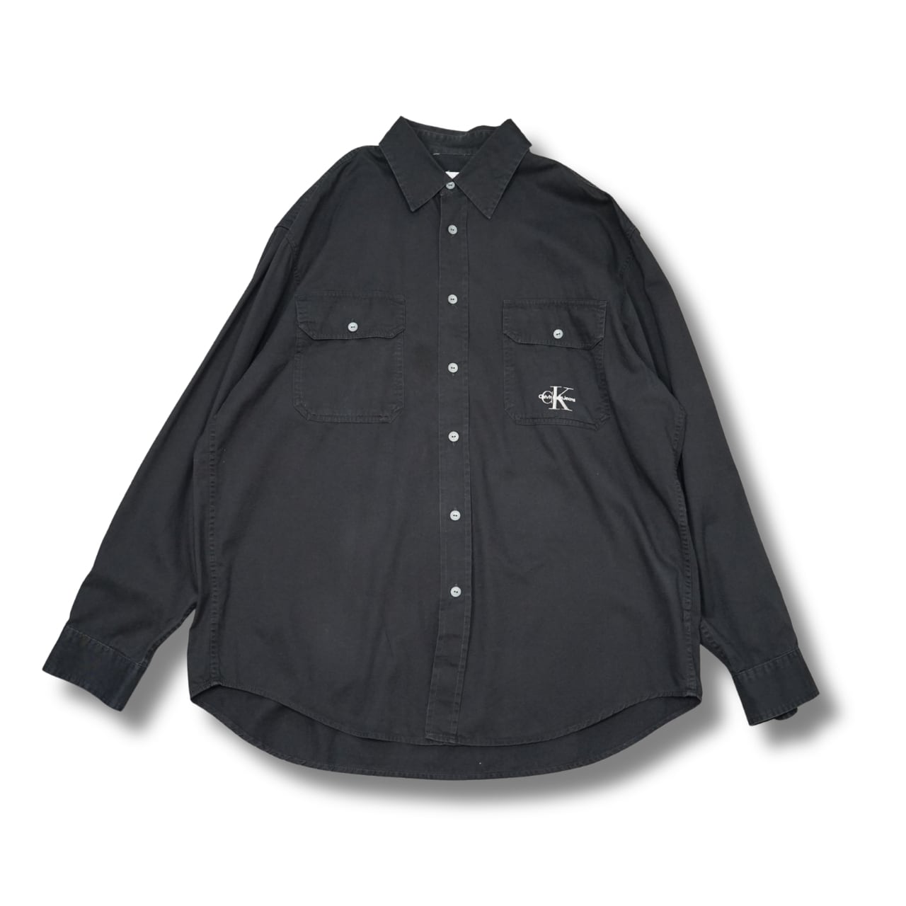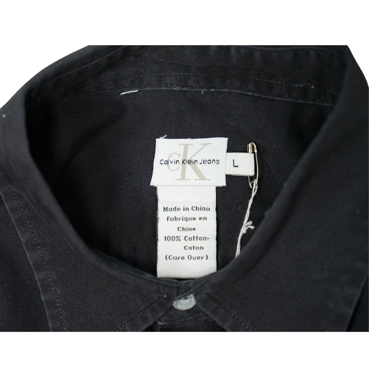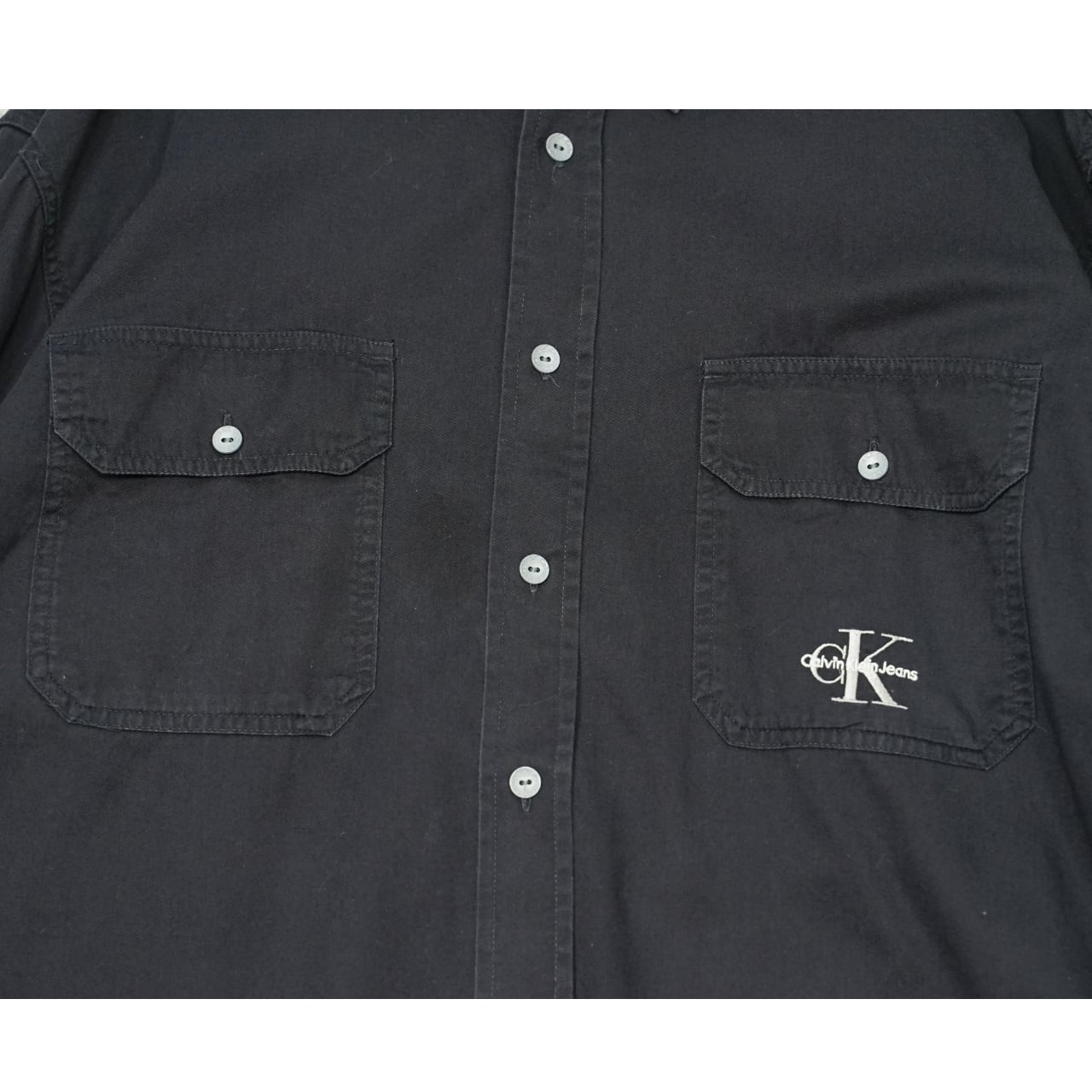 Calvin Klein Jeans カルバンクラインジーンズ ブラック ロゴ刺繍シャツ 表記L(実寸L相当)|NA626