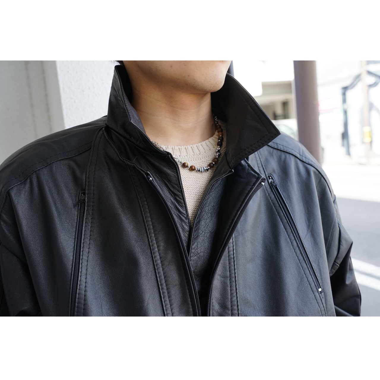 スラックスやワイドパンツなどと合わせるだけでスタイリングがまとまる、存在感のあるレザージャケットです。