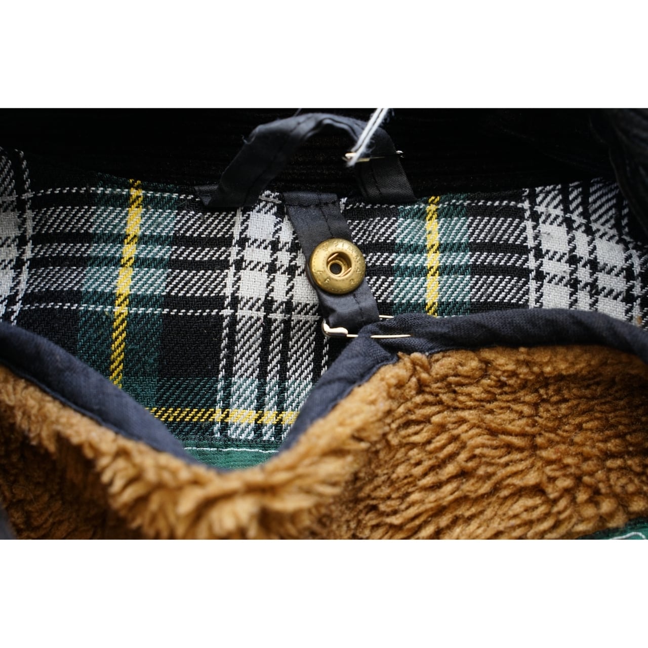 コーデュロイ襟と大きめのフラップポケットが特徴的な一着。
