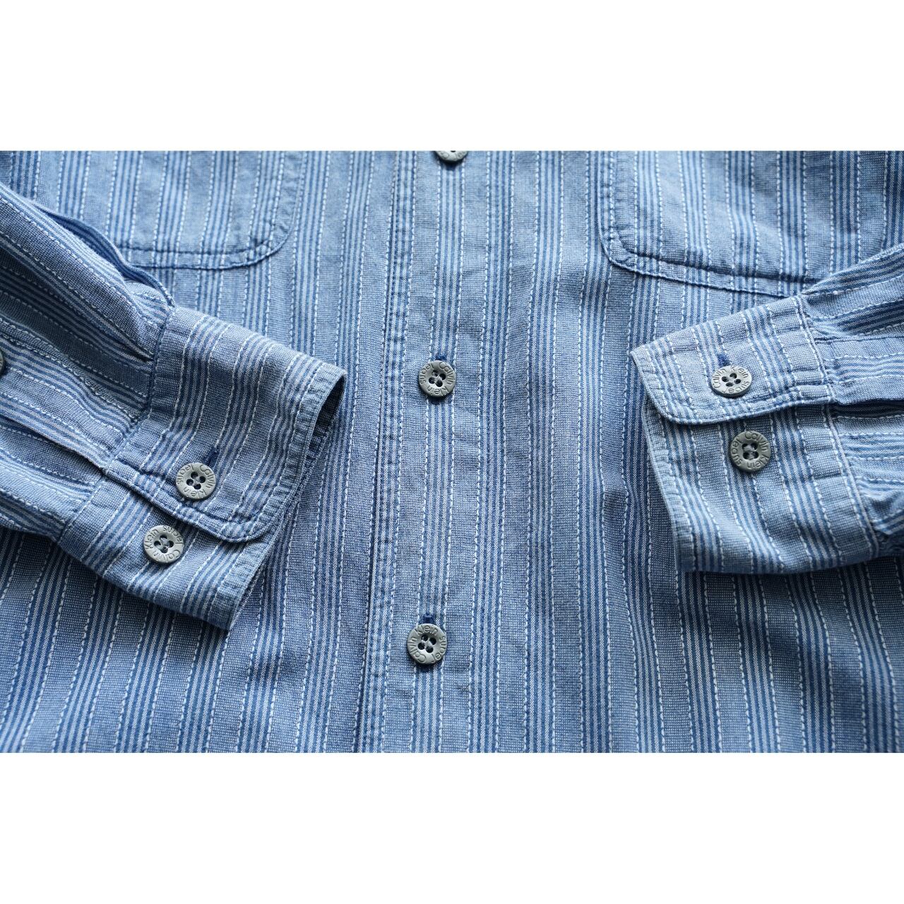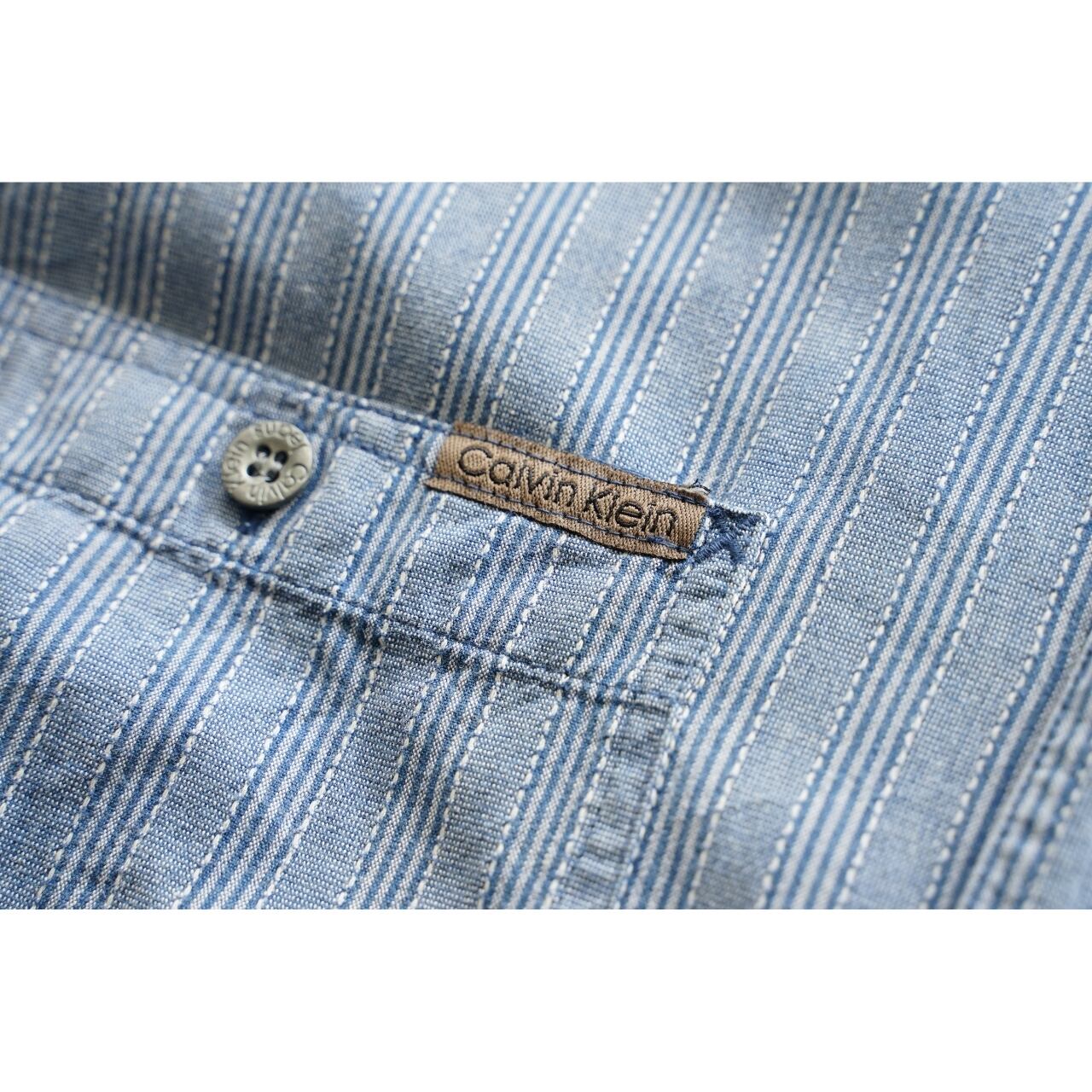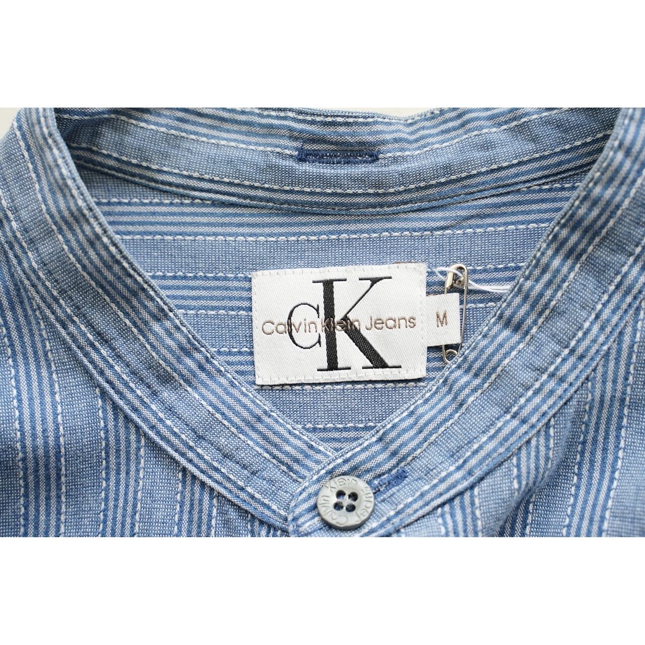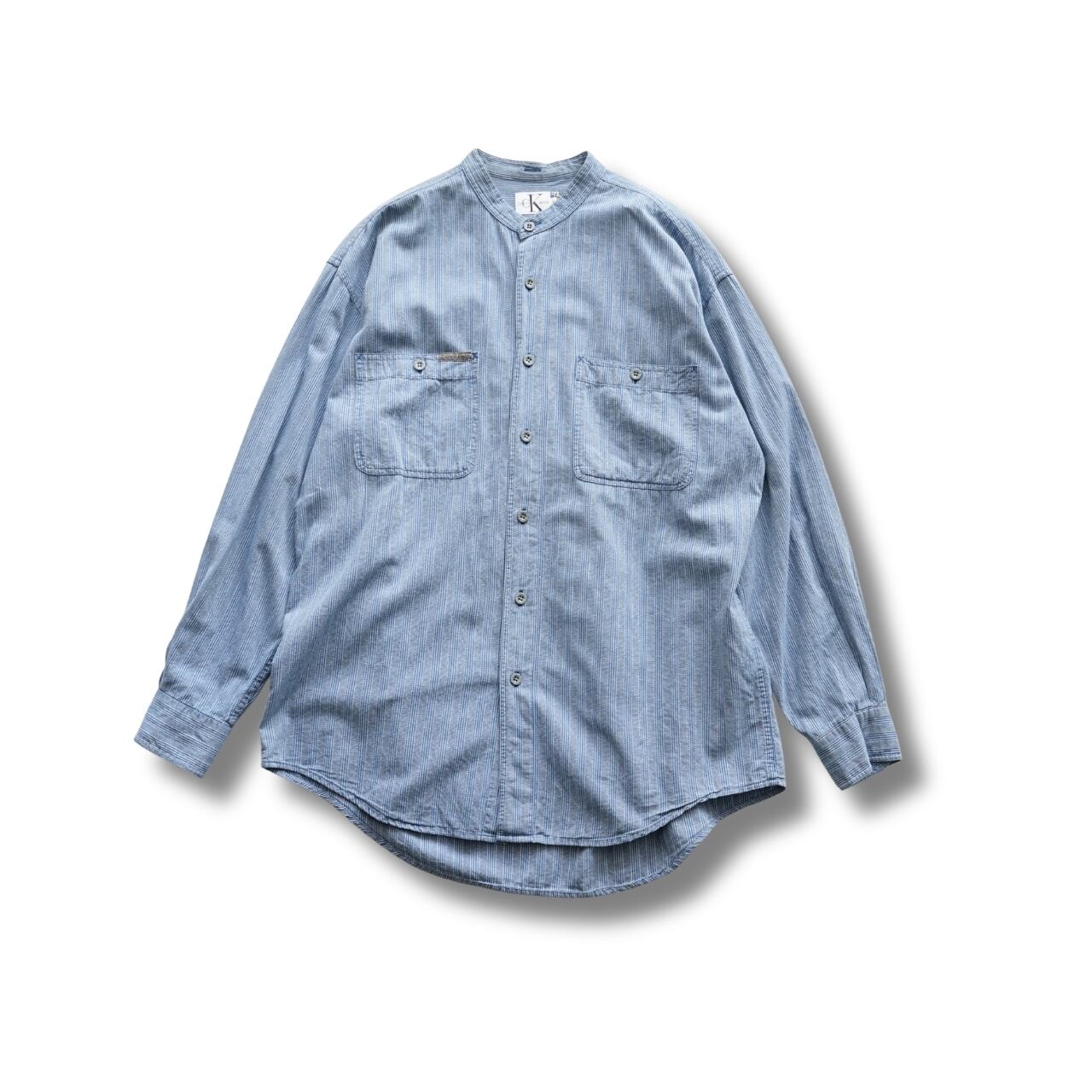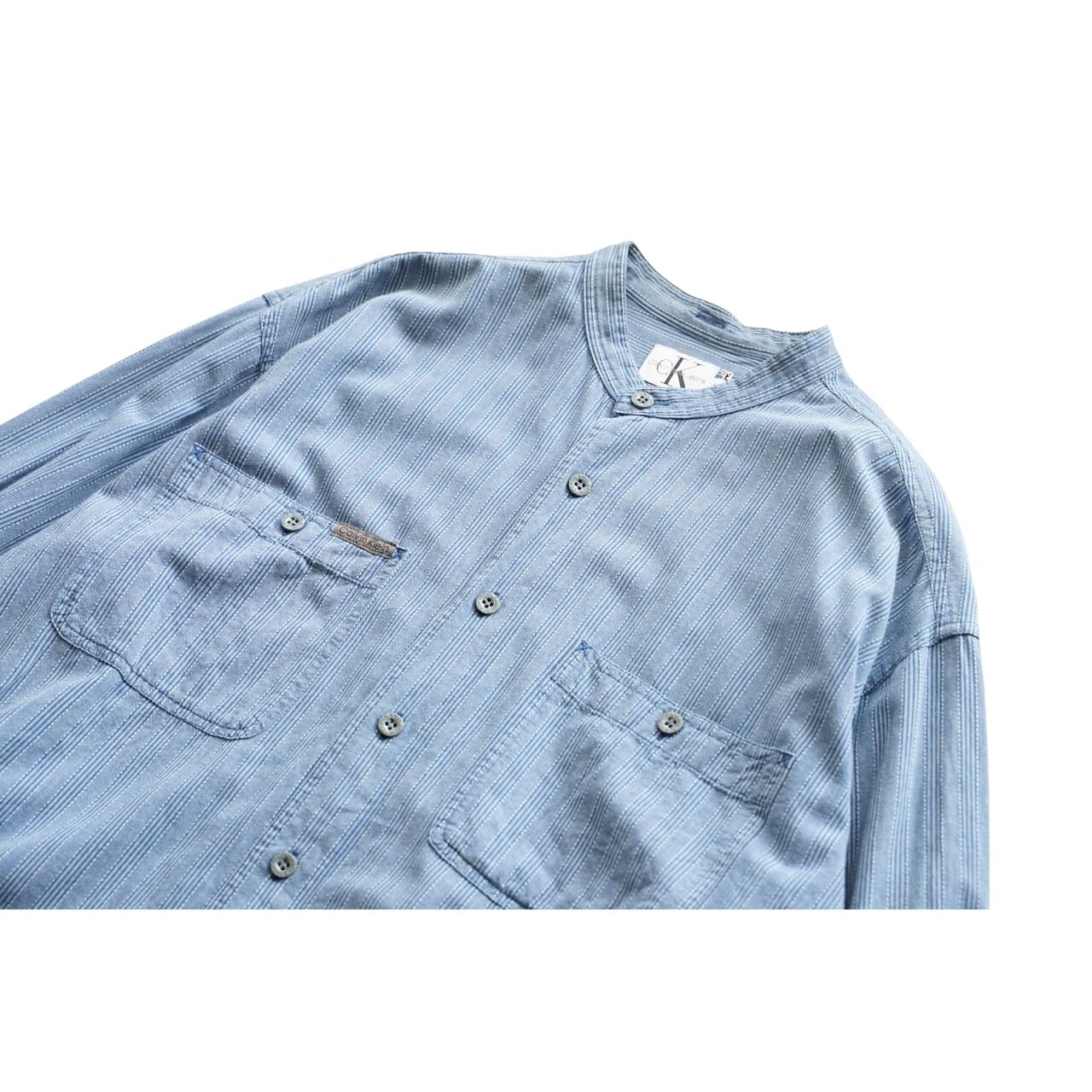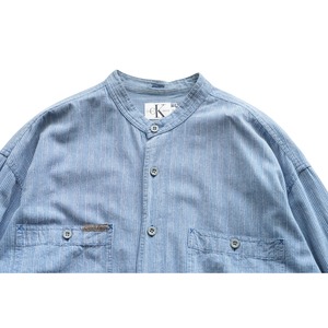 Calvin Klein Jeans カルバンクラインジーンズ バンドカラー ストライプシャツ 表記M(実寸L相当)|NA678