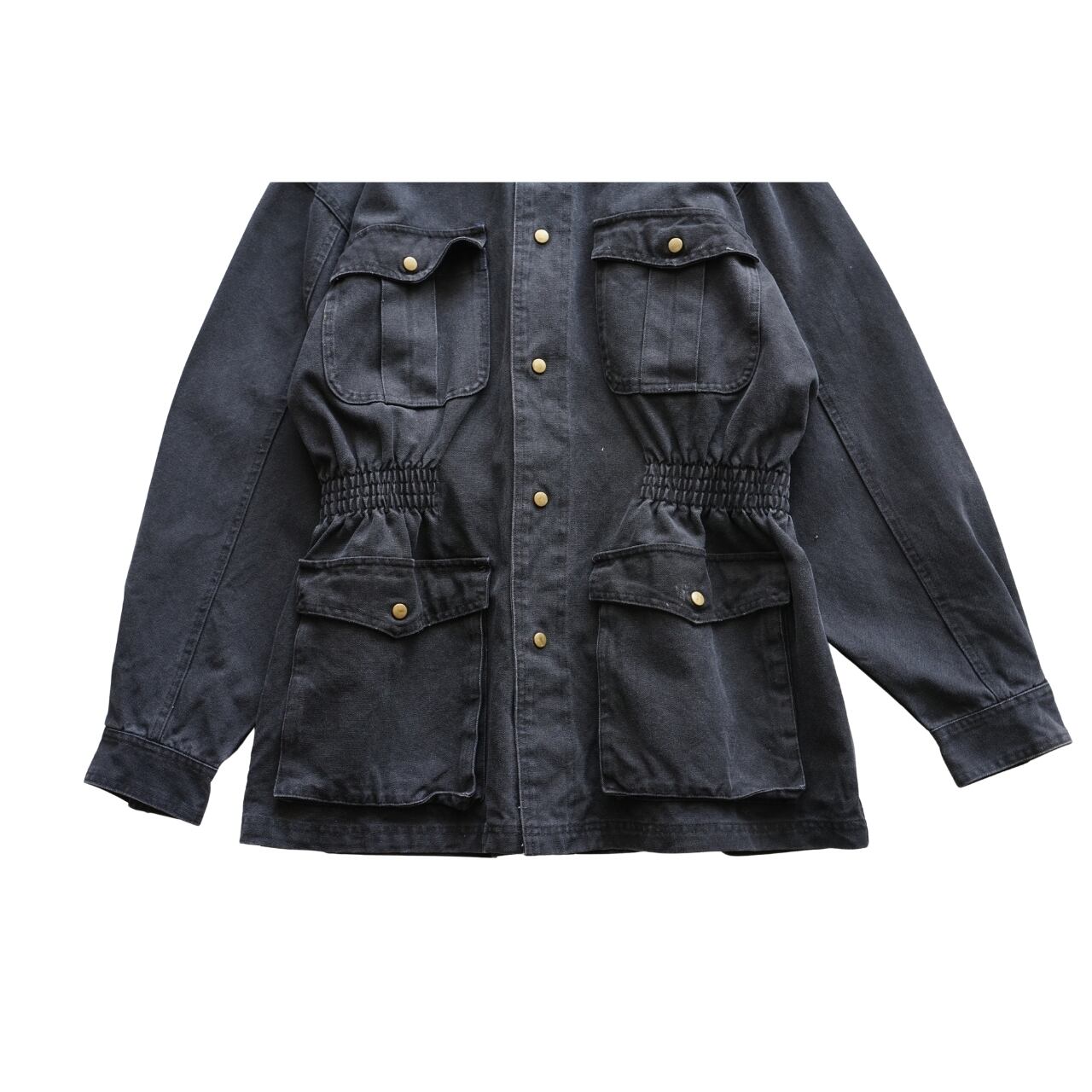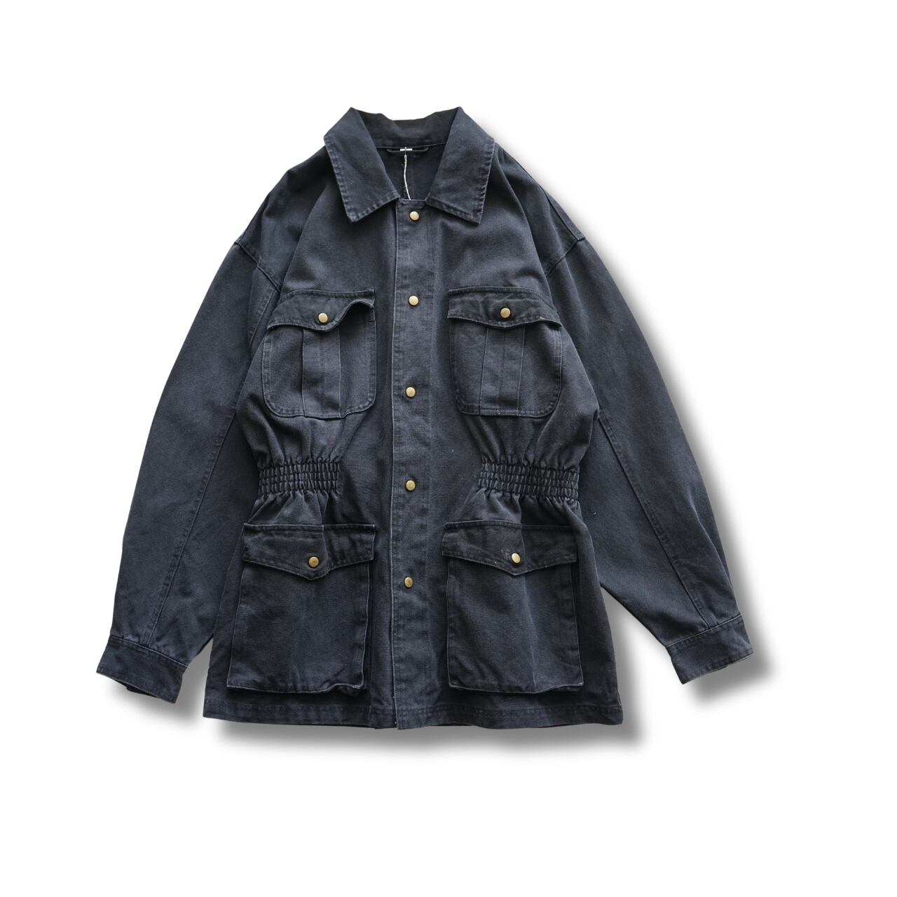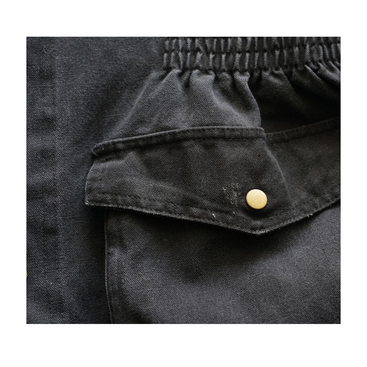フロントのスナップボタンや立体的なポケットが映える一着です。