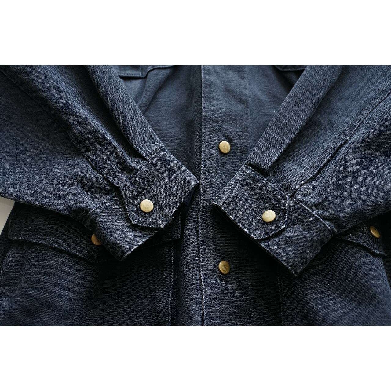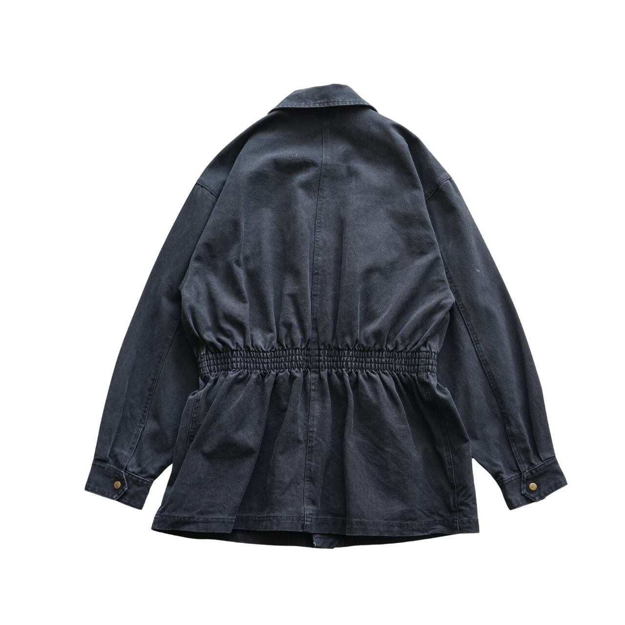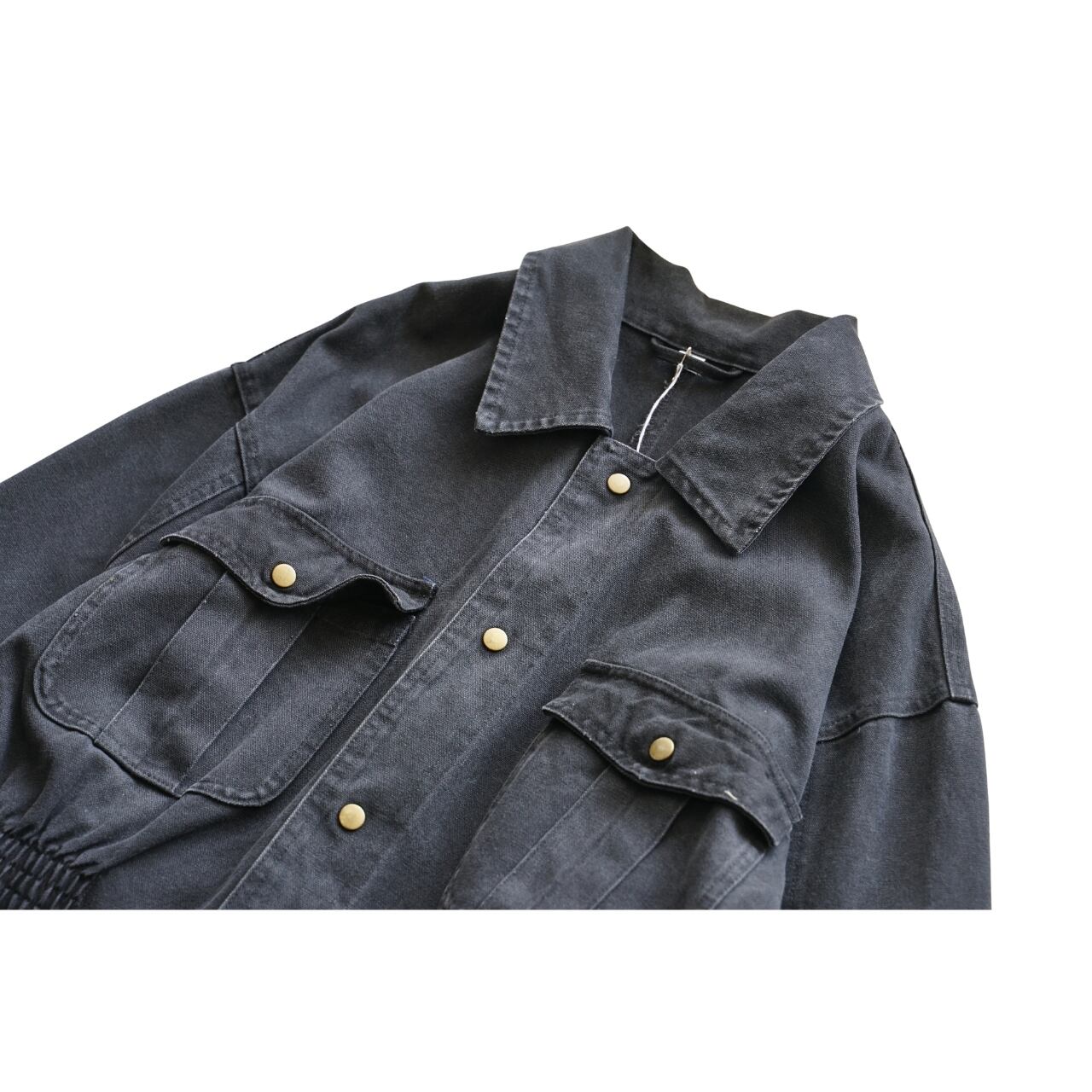 フロントのスナップボタンや立体的なポケットが映える一着です。