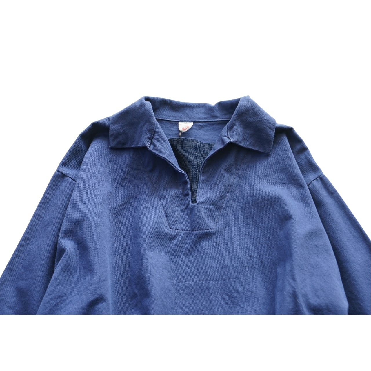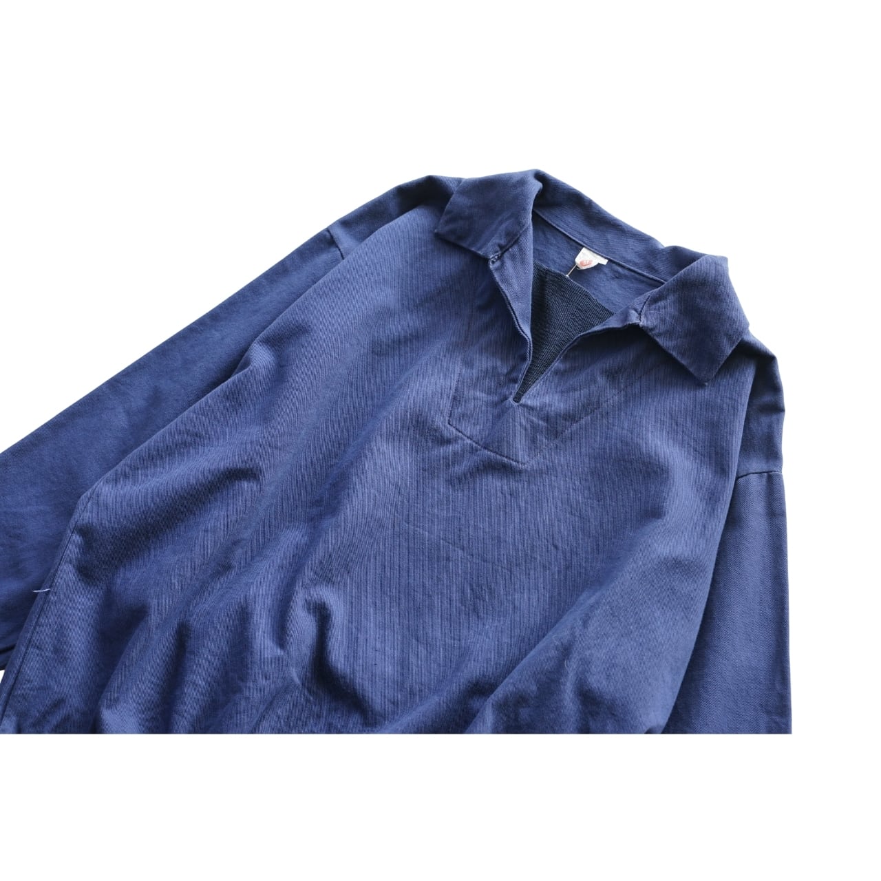 深めのスキッパー仕様に、ゆるく丸みのあるシルエットが特徴的です。
