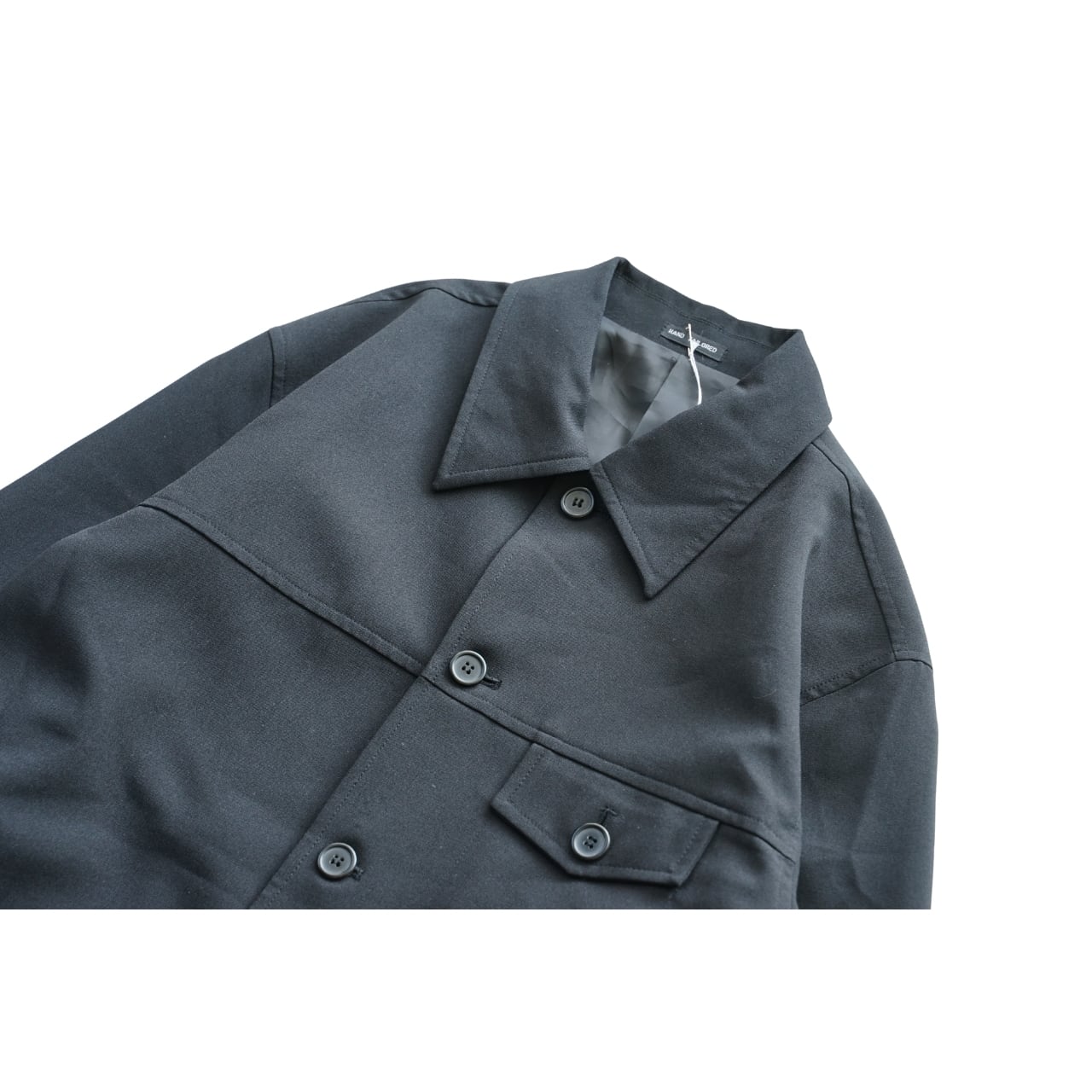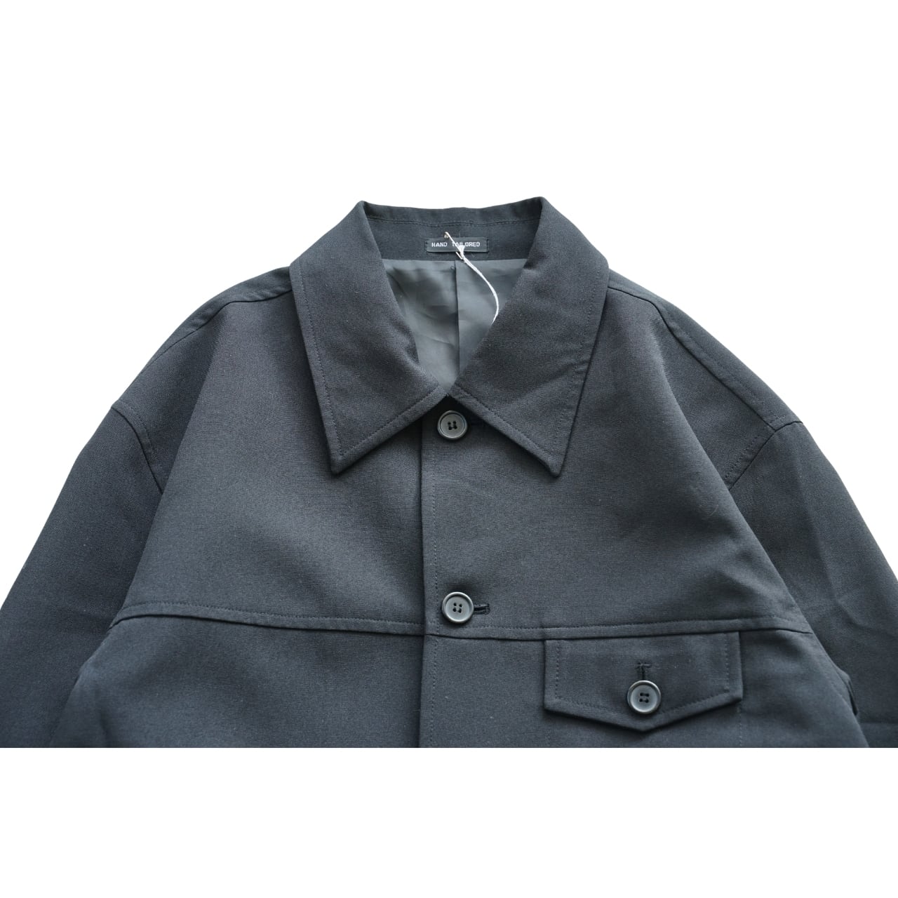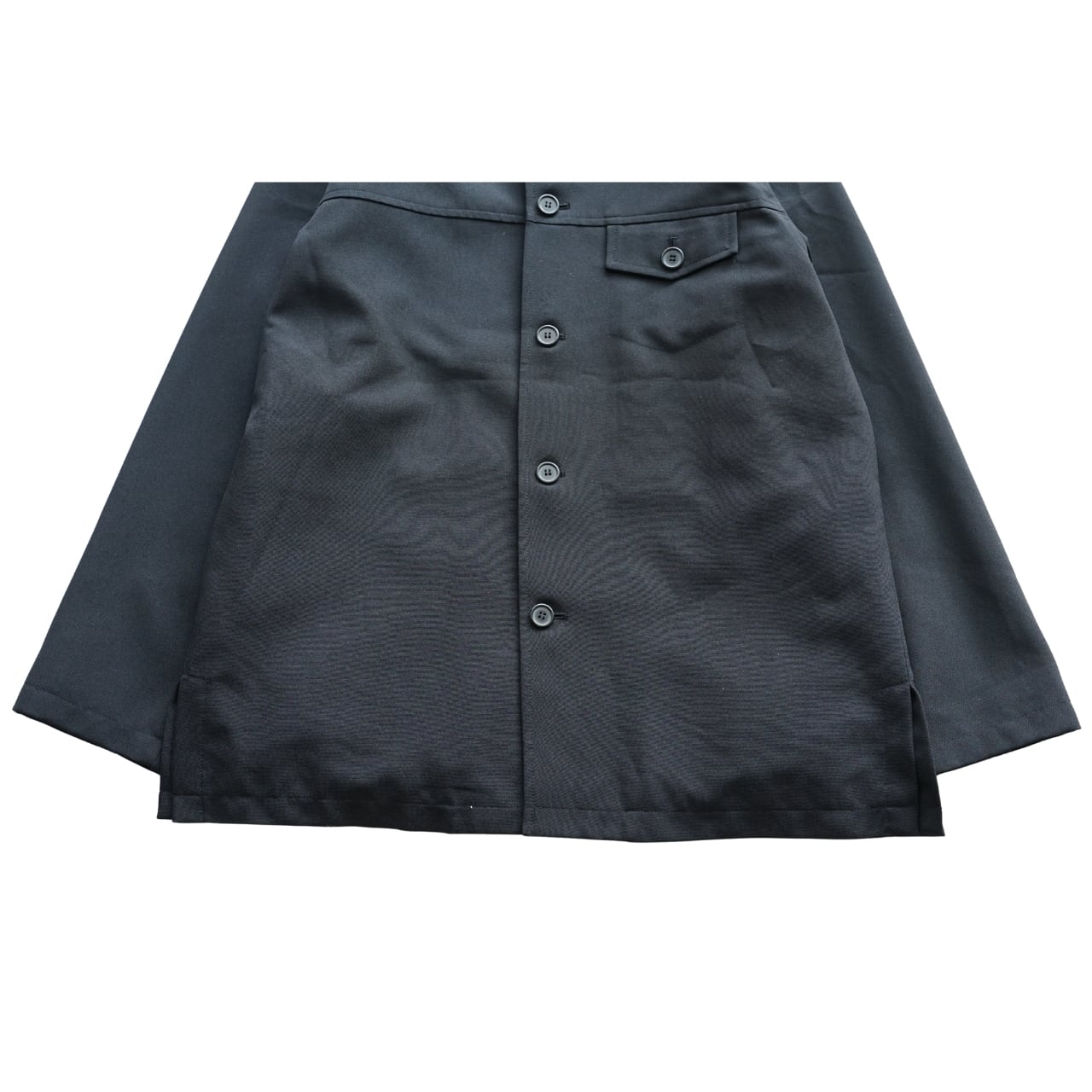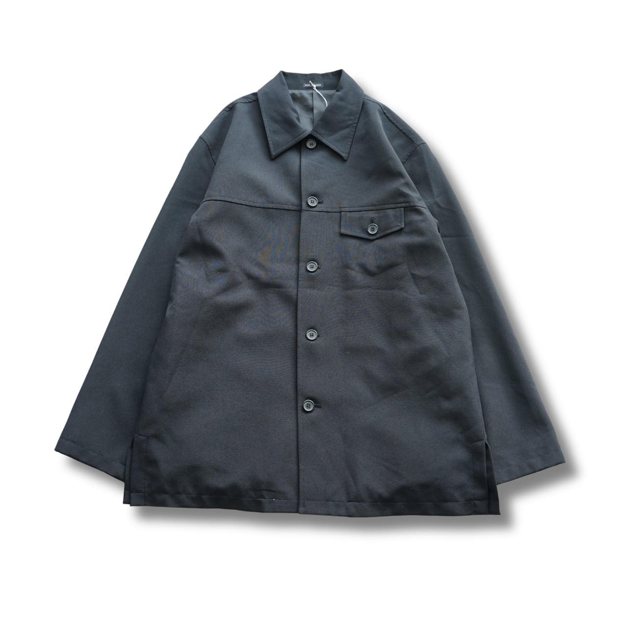 マットな質感のポリエステル生地が特徴の一着です。