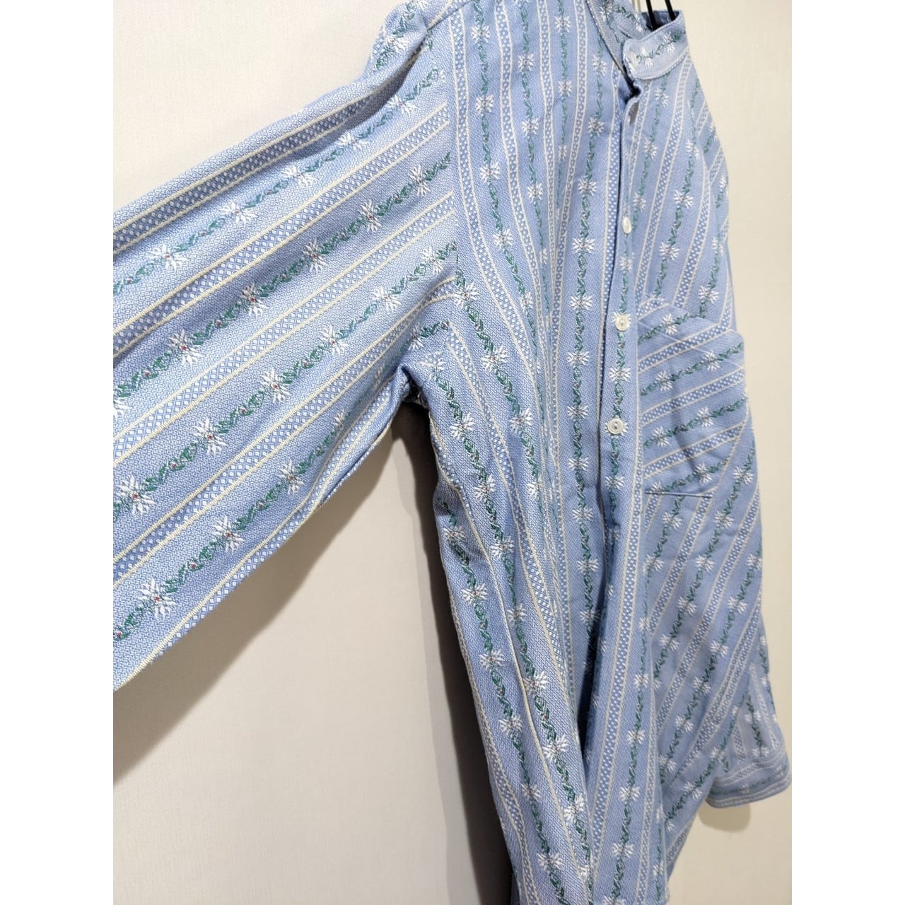 エーデルワイスシャツ 古着 ビンテージ ユーロ ブルー 花柄 BS350