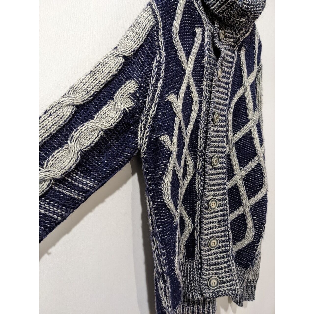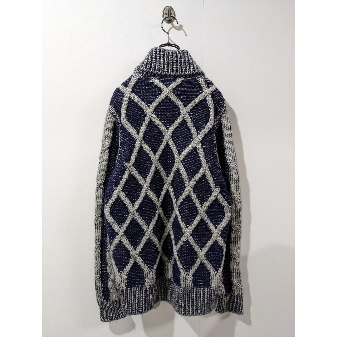 タートルネックニット カーディガン 古着 ネイビー BS375