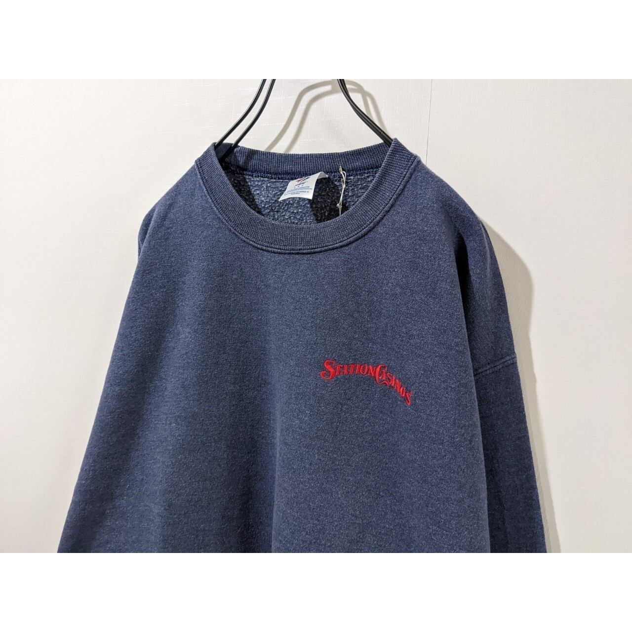 ワンポイントスウェット 古着 ネイビー ロゴ 刺繍 ストリート BS436