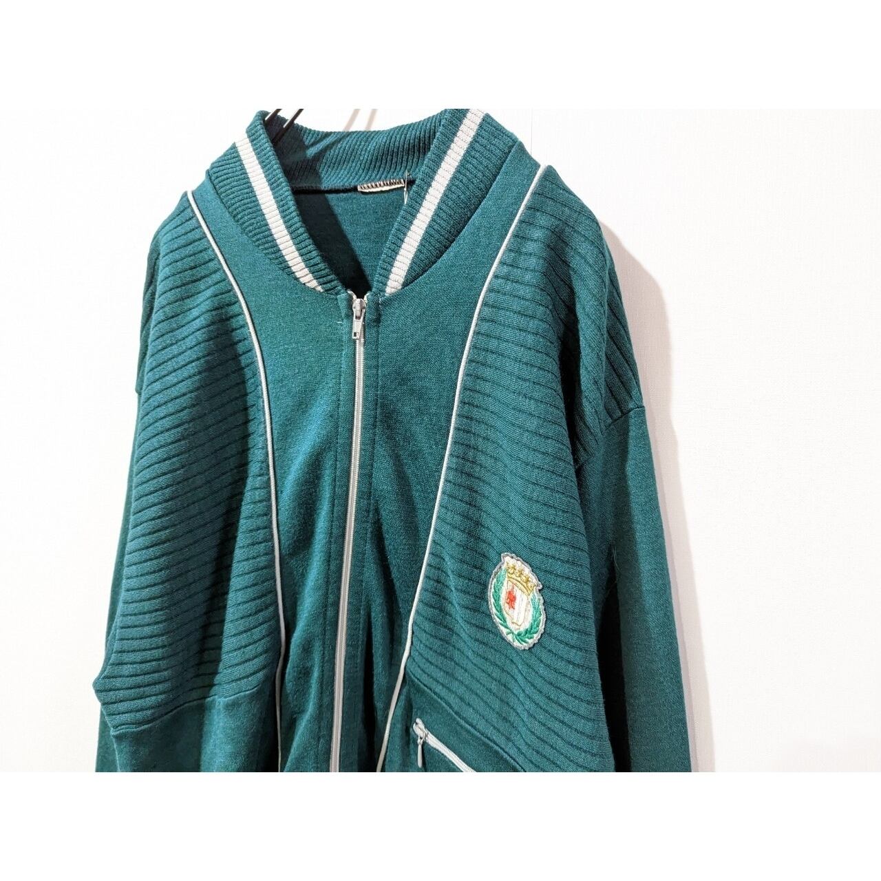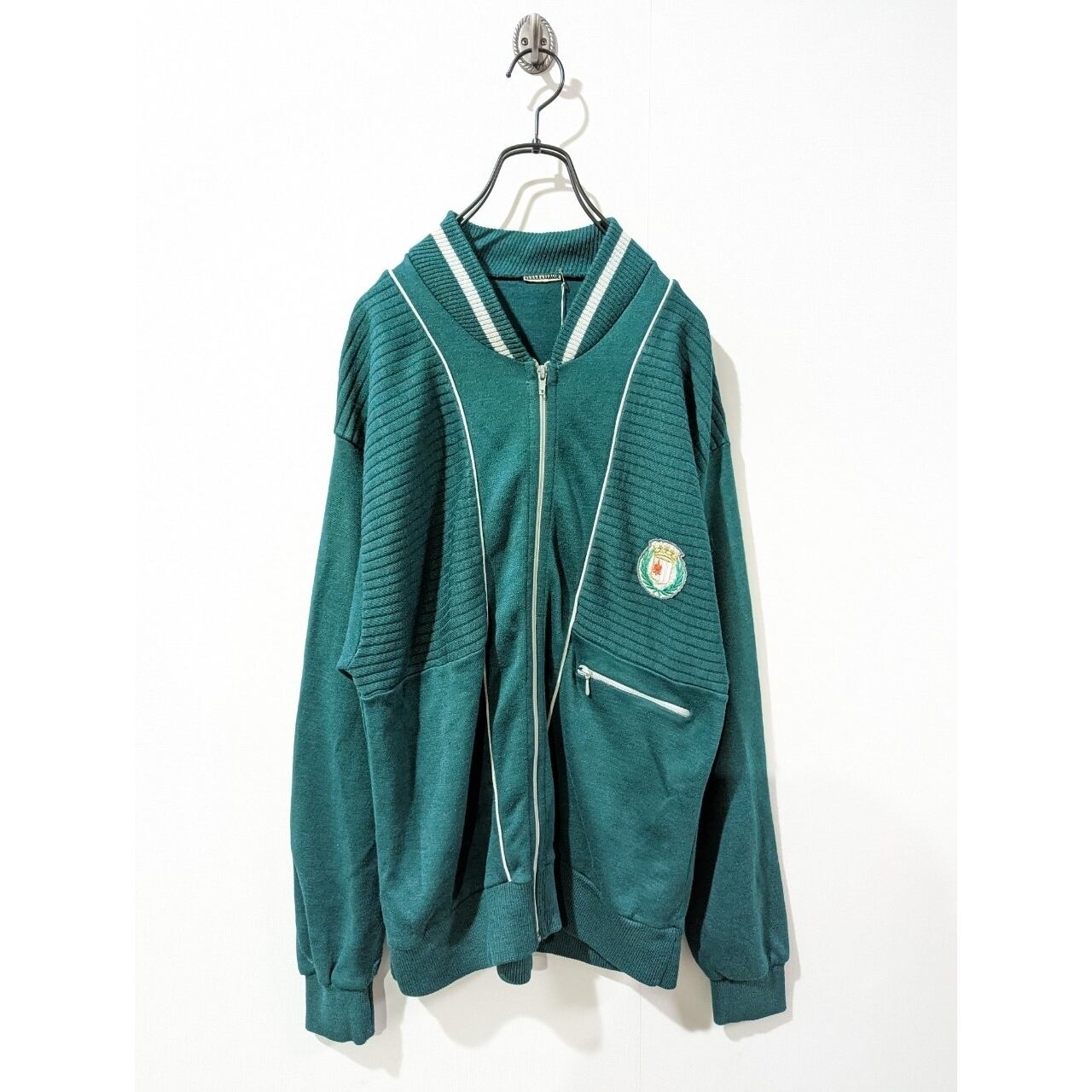 ジップアップスウェット 古着 グリーン フルジップ ワッペン BS446