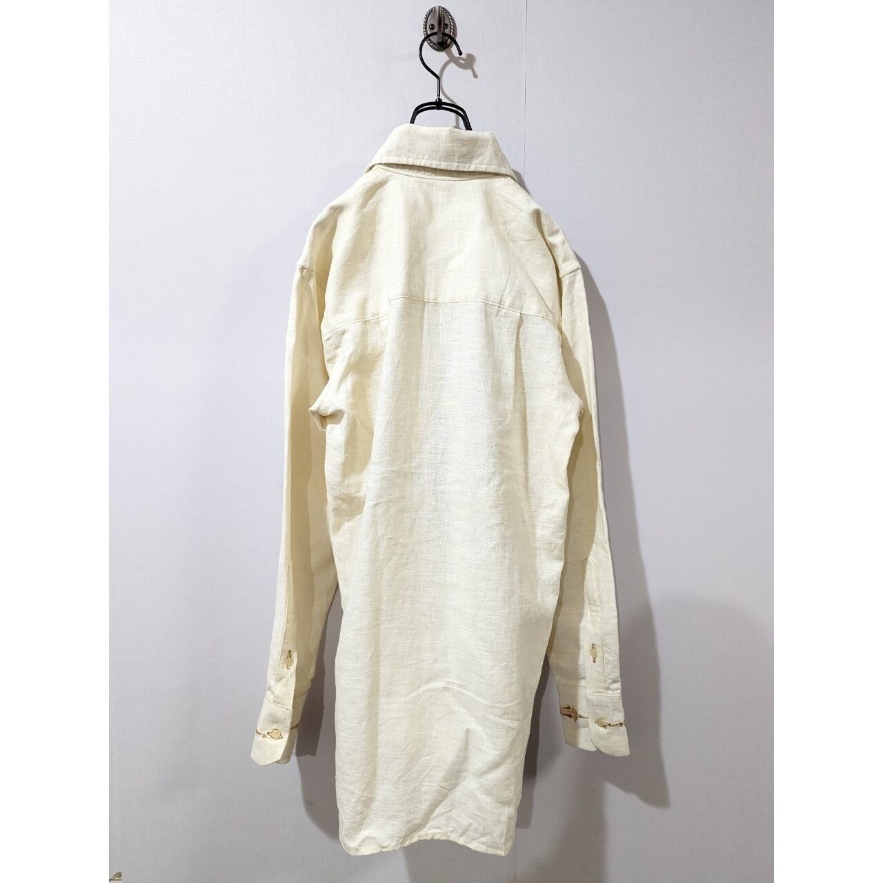 リネンシャツ 古着 ビンテージ 刺繍 長袖 生成り BS699