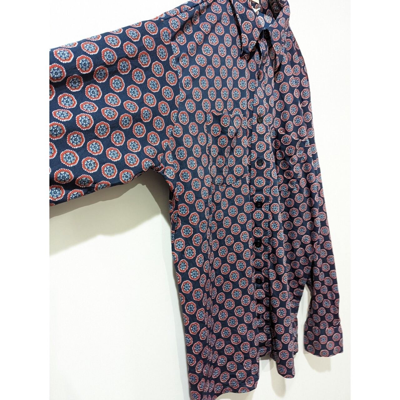 ビンテージシャツ 古着 70's 柄シャツ ネイビー BS738