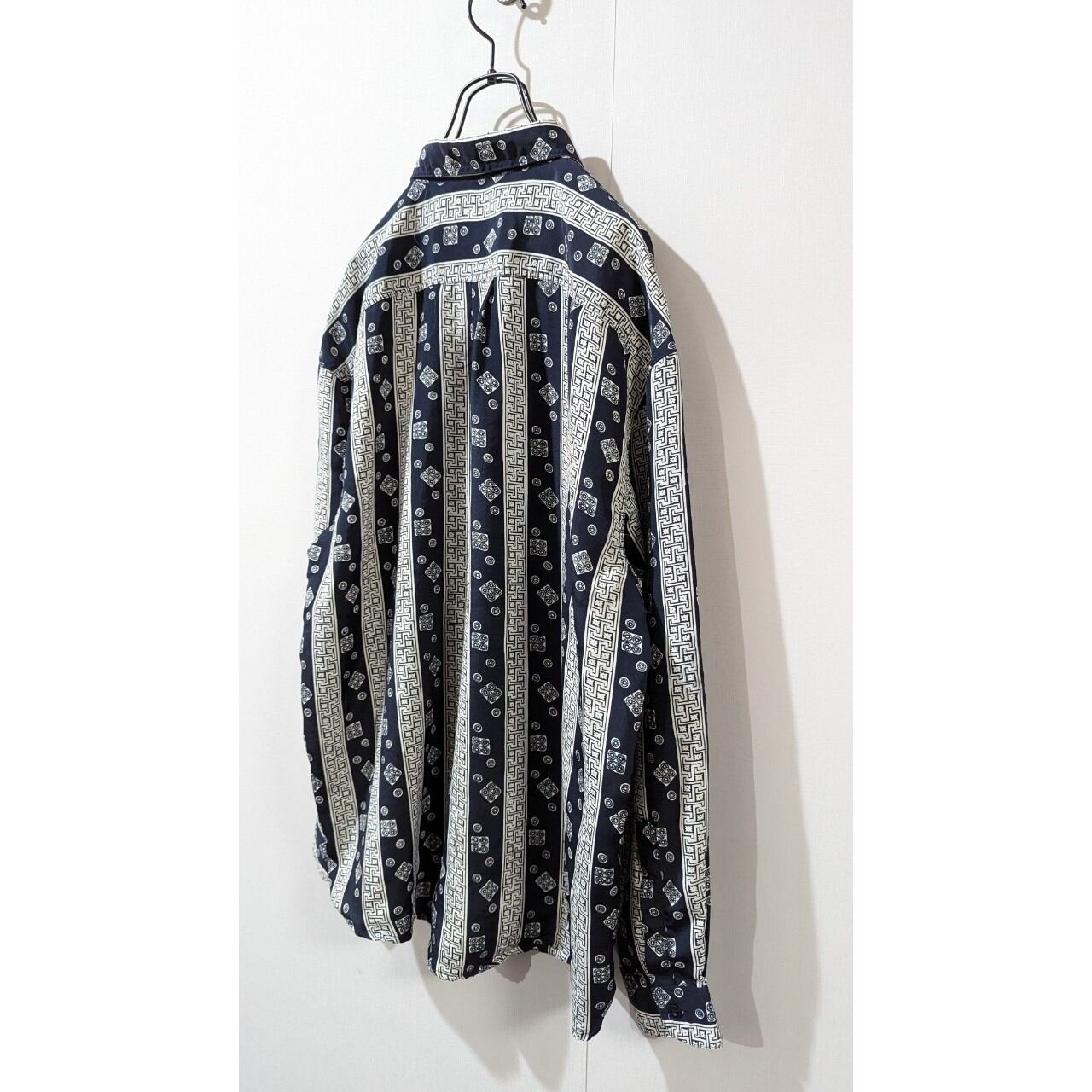 パターンシャツ 古着 柄シャツ ストライプ ネイビー BS762