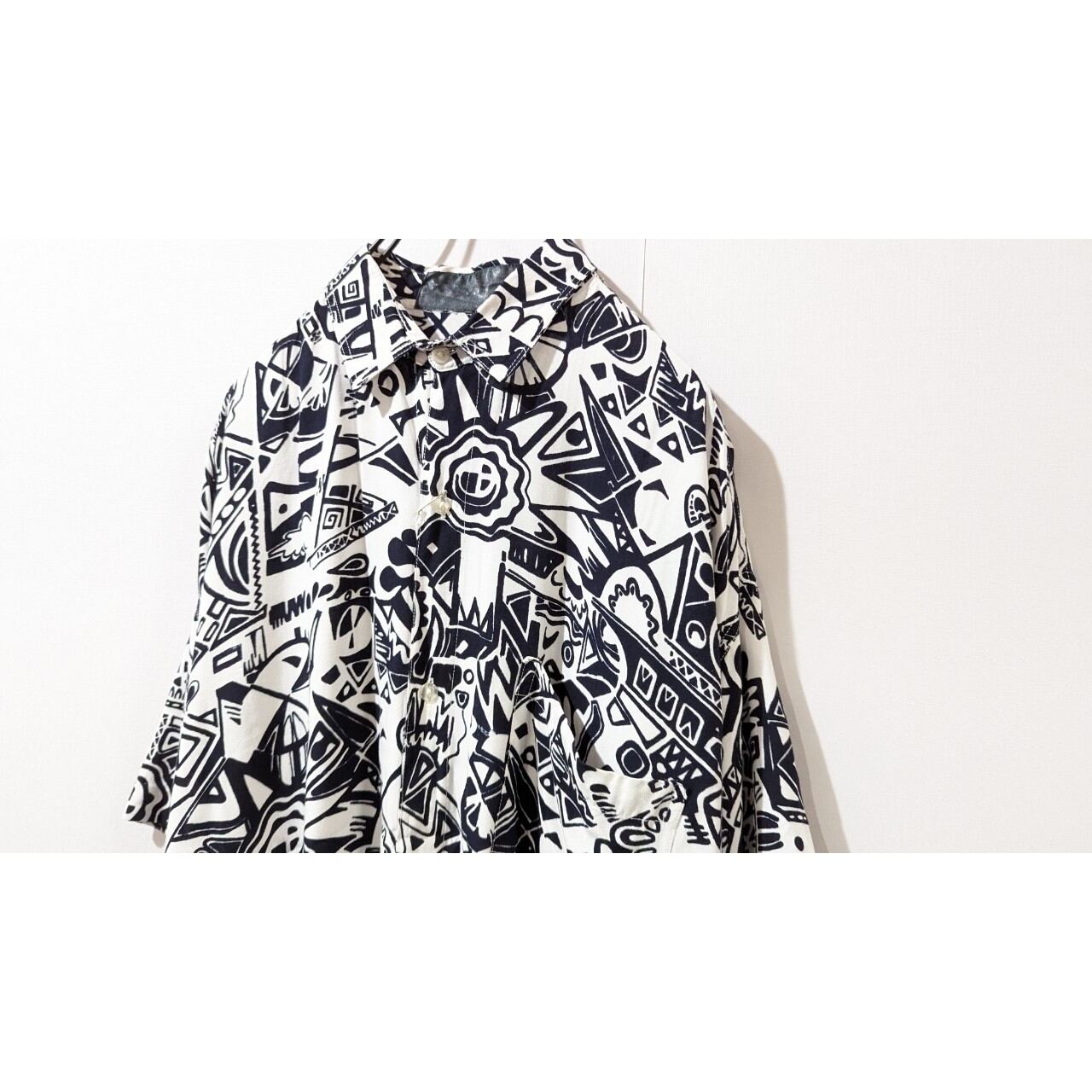 デザインシャツ 古着 モノトーン 半袖シャツ ブラック ホワイト BC110