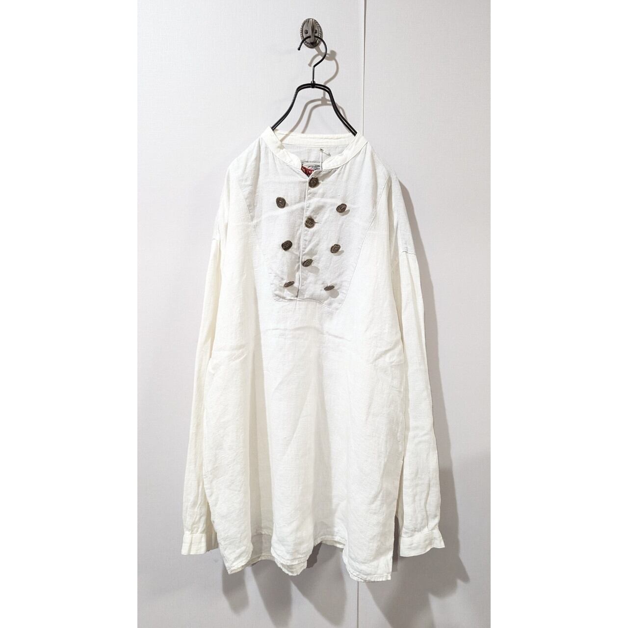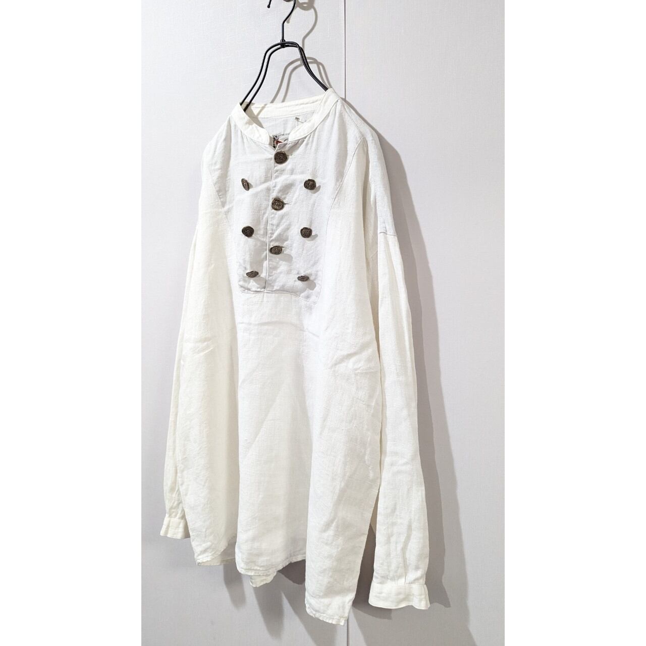 チロリアンシャツ 古着 リネン ホワイト ボタン ユーロ BD10