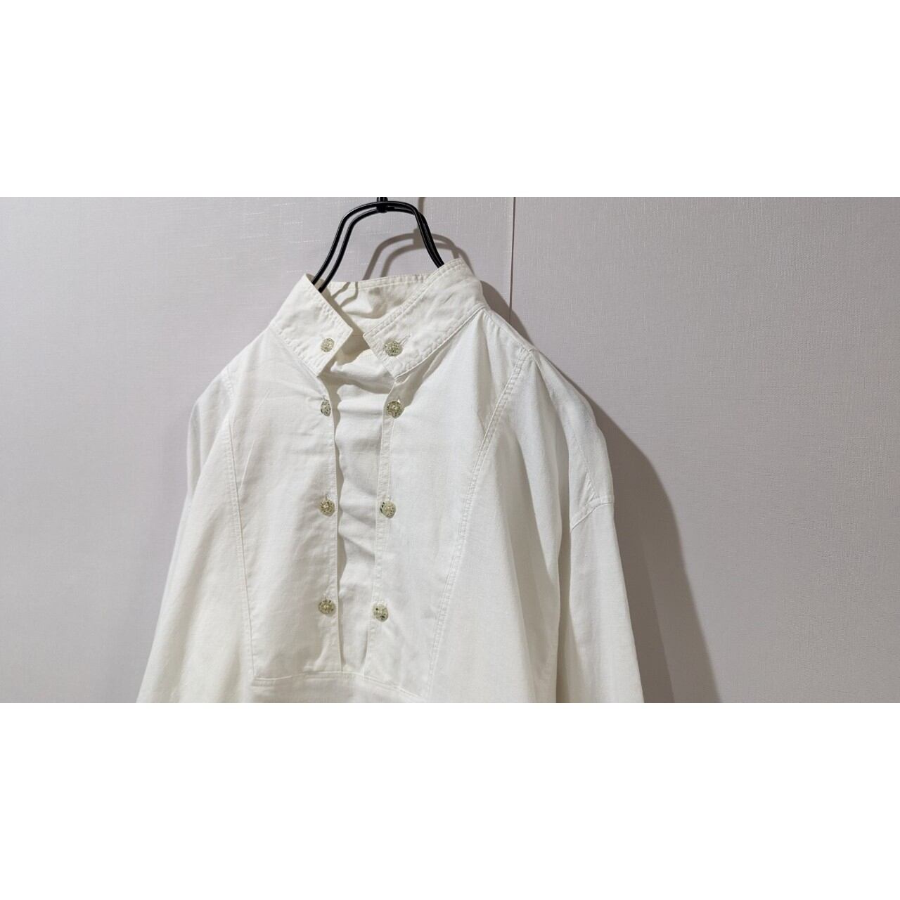 スタンドカラーシャツ 古着 ホワイト デザインシャツ 長袖 BD15