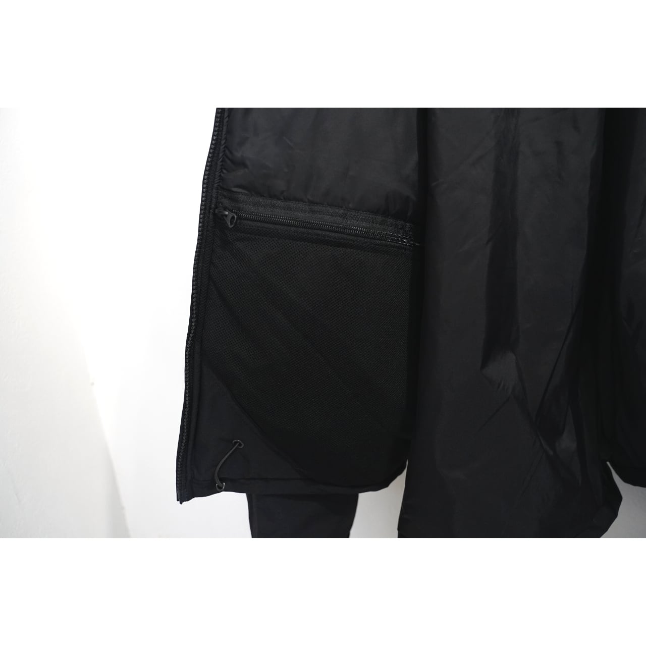 ダブルフロント仕様により外気を通しにくく、外付けのフードは着脱可能なうえドローコードで調節もできます。