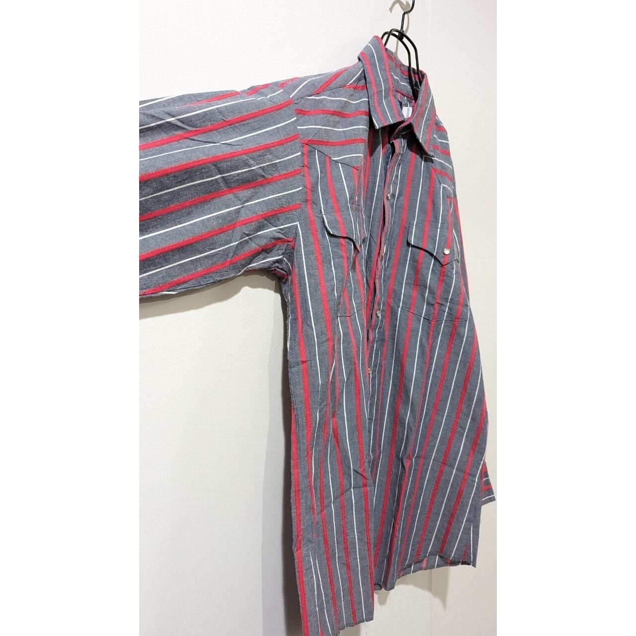 ウエスタンシャツ USA 古着 ネイビー レッド ストライプ BD25