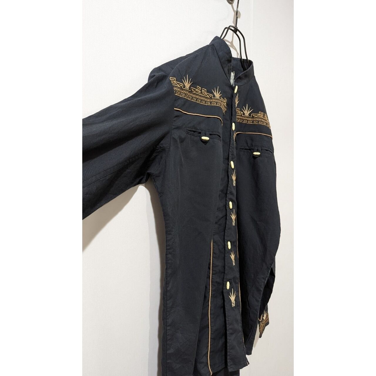 デザインシャツ 古着 ブラック 刺繍 スタンドカラー BD68