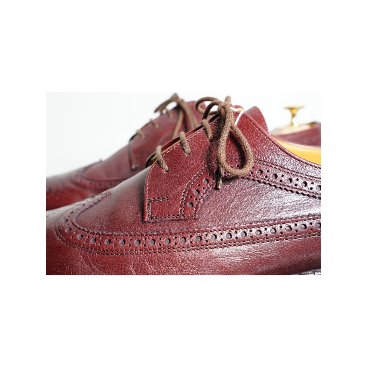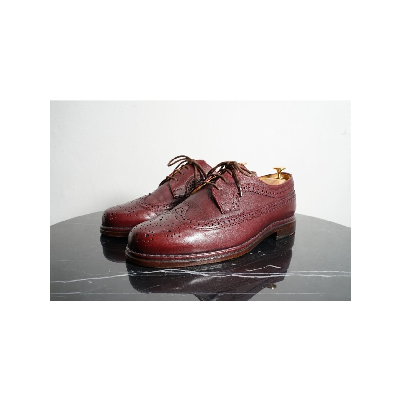 ロングウィングチップ レースアップシューズ バーガンディ ワインレッド 革靴 SS4 8 26~26.5cm