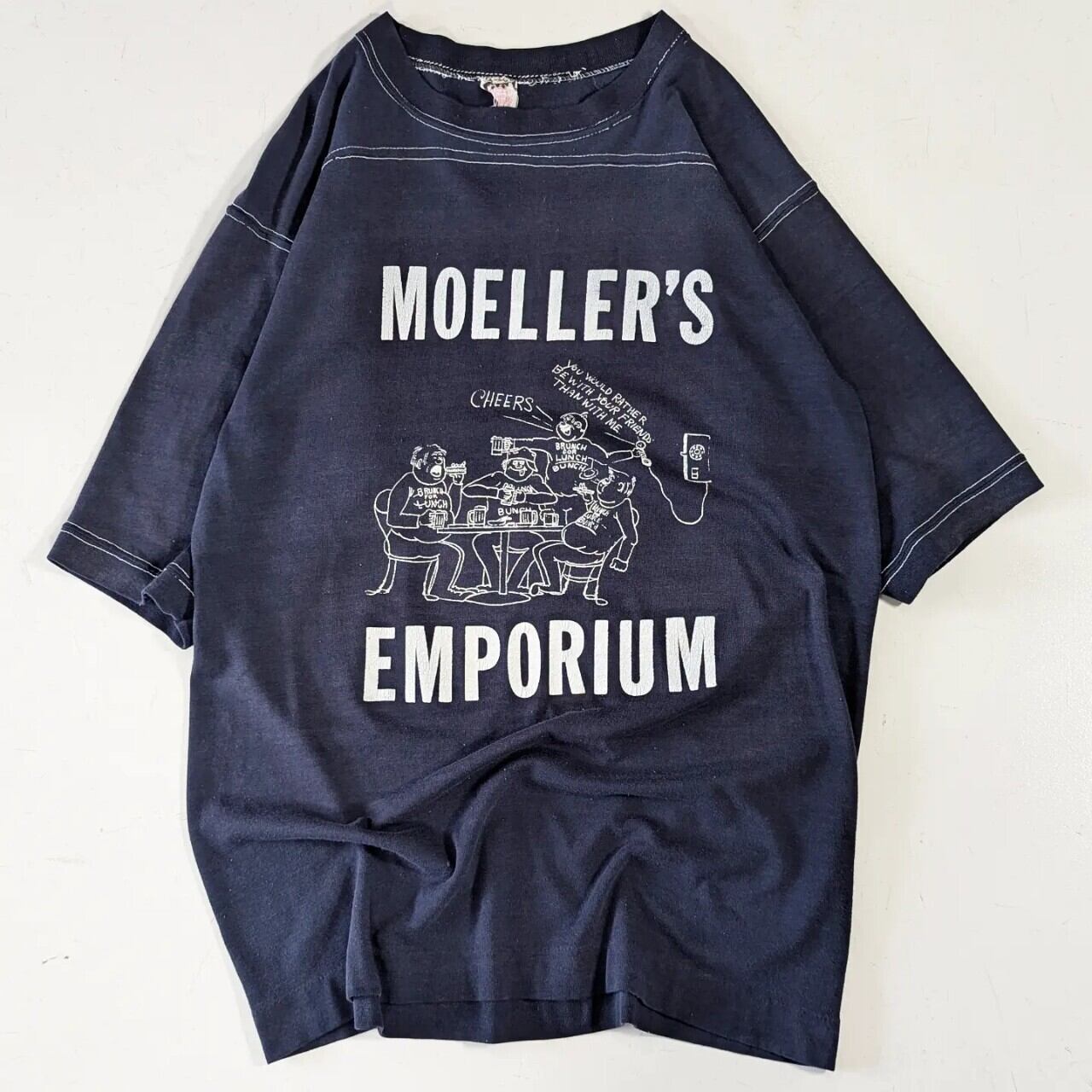 プリントTシャツ シングルステッチ 古着 ネイビー ロゴ PA204