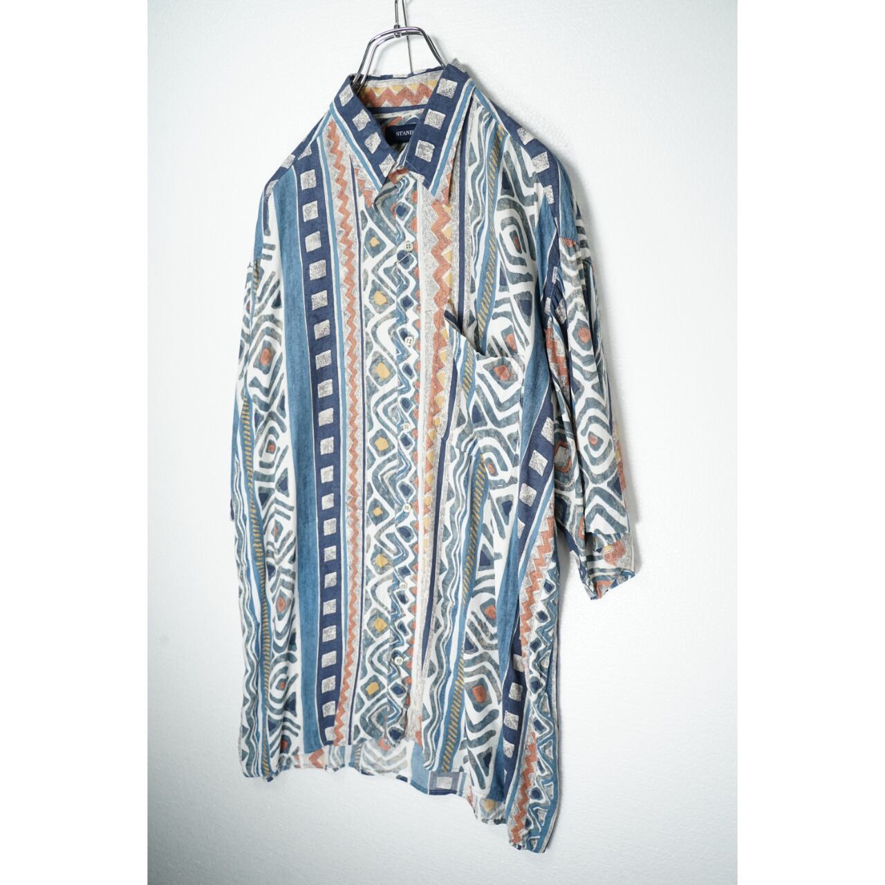 半袖シャツ 柄シャツ 古着 総柄 ブルー系 PA210