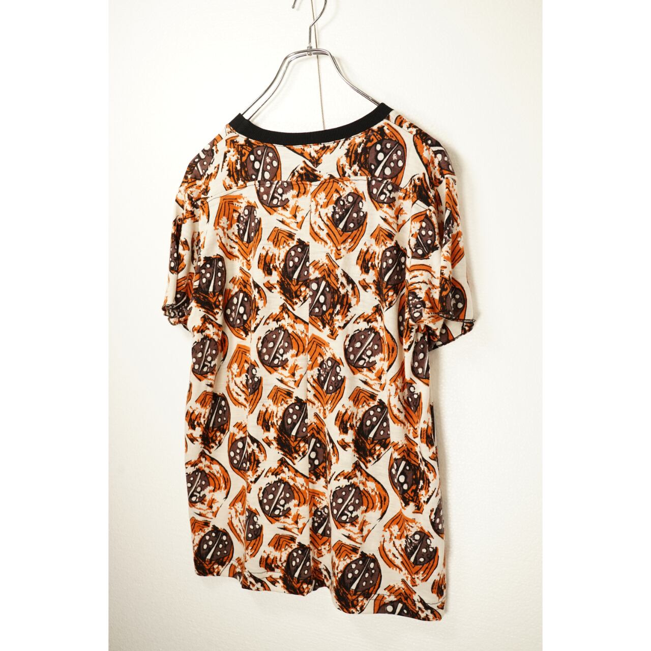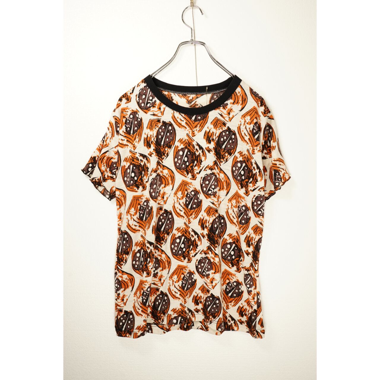 プリントTシャツ 古着 総柄 デザイン オレンジ ブラウン PA217