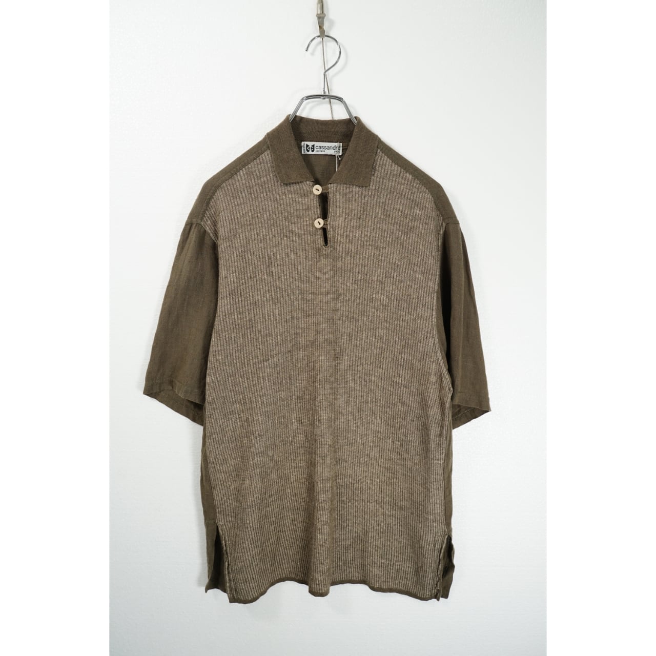 リネンポロシャツ 半袖シャツ 古着 カーキ 麻 襟 PA247