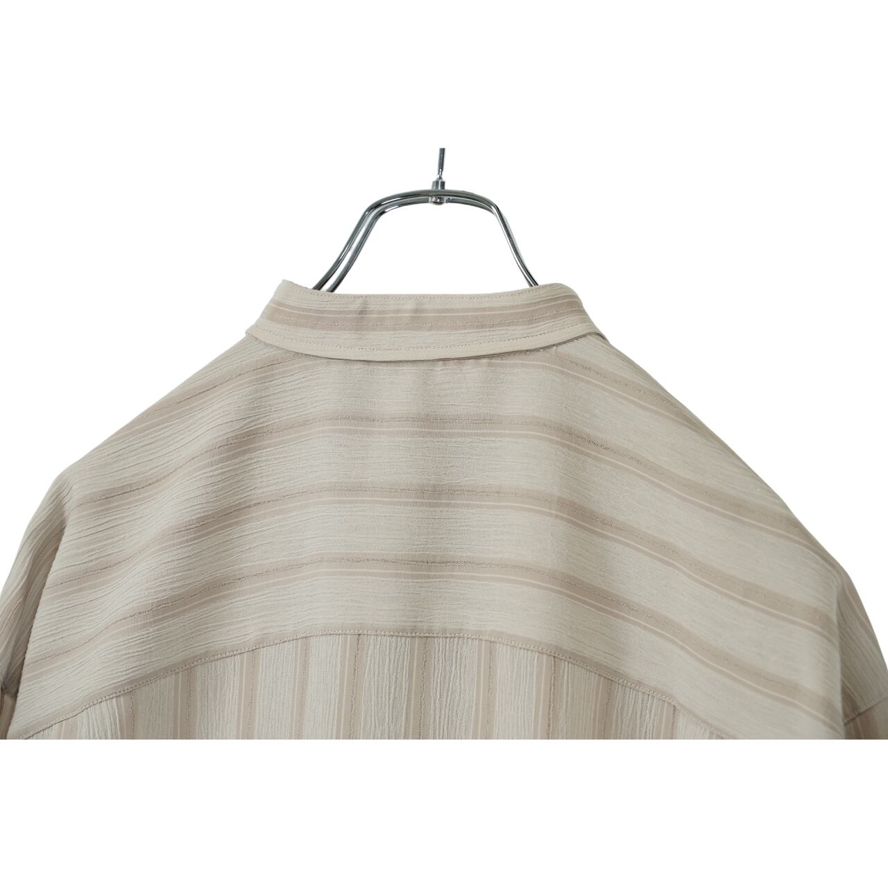 バンドカラーシャツ シアーシャツ 古着 ベージュ ストライプ PA251