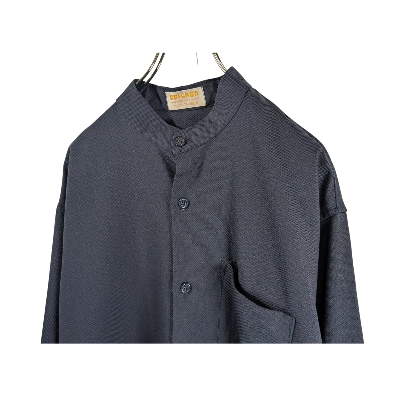 シャツジャケット 古着 ネイビー バンドカラー ライトアウター 羽織 AM60