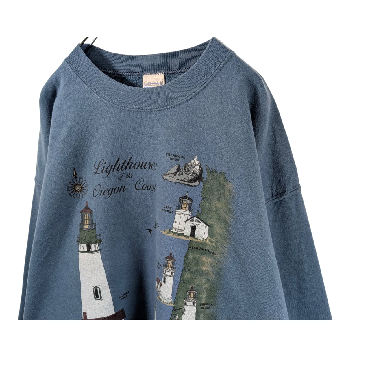 GILDAN ギルダン プリントスウェット 古着 灯台 ブルー PA72